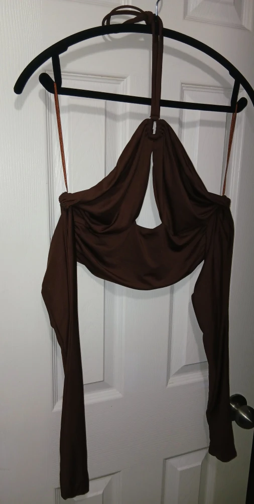 Here's a stylish brown halter top from Streetwear Society! It features cut out details & is perfect for adding a unique touch to your wardrobe!