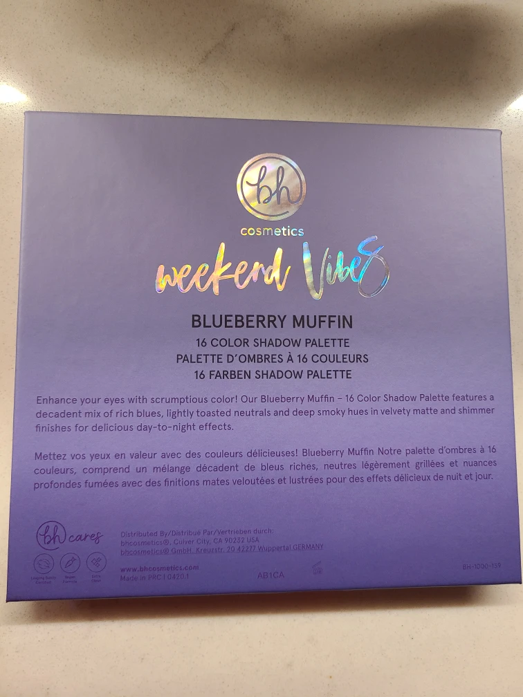 BH Cosmetics Weekend Vibes Blueberry Muffin 16-color shadow palette! It features a decadent mix of rich blues, lightly toasted neutrals, and deep smoky hues in velvety matte and shimmer finishes for delicious day-to-night effects.