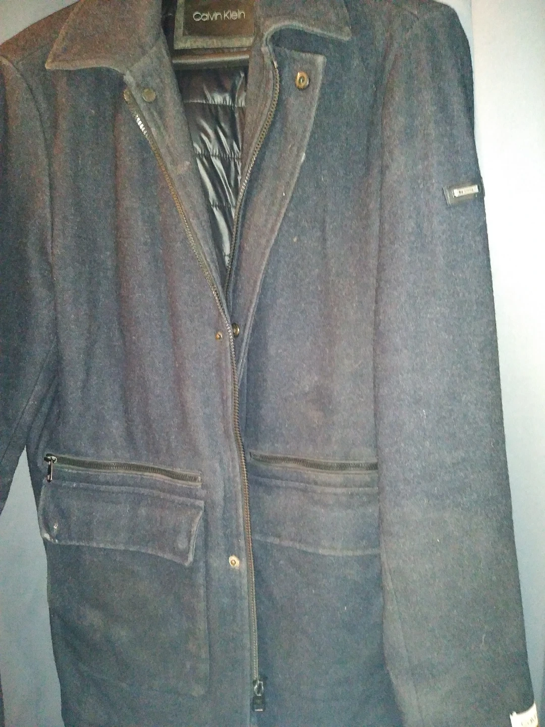 This is an awesome coat it's more like a jacket it's about 3 quart like just past the thigh and it's a fully line for winter very warm very very sophisticated looking and just looks great with casual and/or dress wear or business wear business attire any man would love it and he feel like a million bucks in it be a great Christmas present for any man in your life. They sell for over 500 new, and this is just gently used no rips or tears or holes or anything like that it's in mint condition.