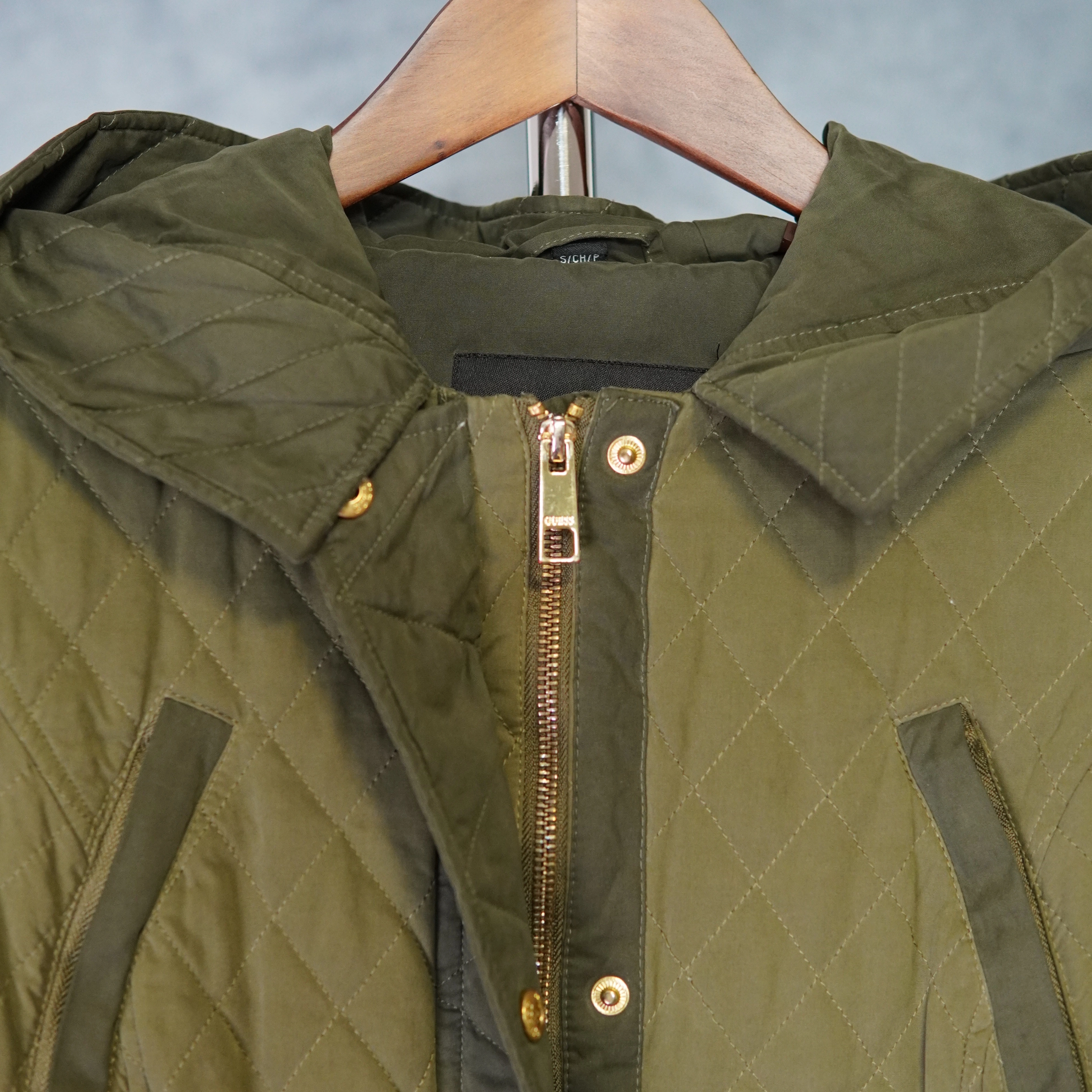 Stylish, warm, and eye-catching — this GUESS women’s hooded parka features a beautiful two-tone green color, quilted detailing, and elegant gold hardware accents. A perfect blend of fashion and function for winter weather.