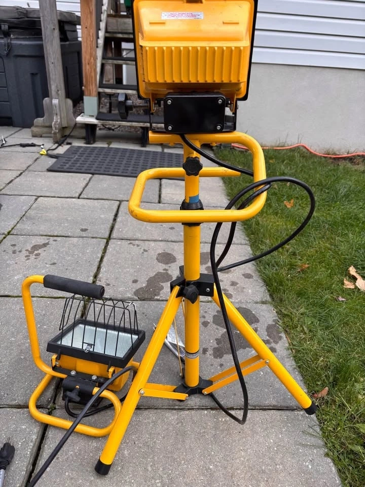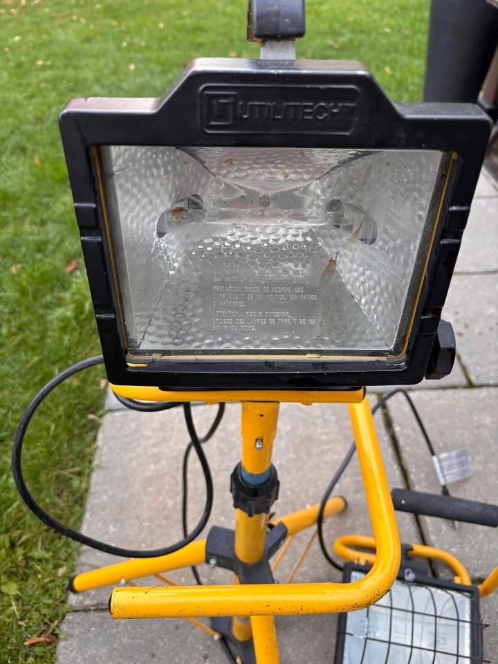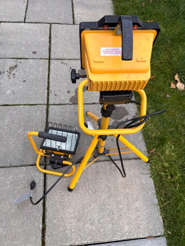 One is in a tripod, the other is a stand alone unit. Can be used for multiple reasons, as a spot light, flood light, mechanics or work light.