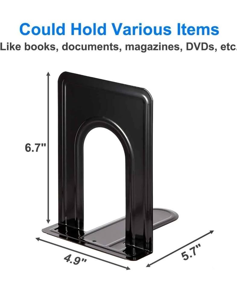 Heavy Duty Bookends for Shelves, Anti-Slip Base, Black, Great for Library, Office, Home, School, 4 Pairs
