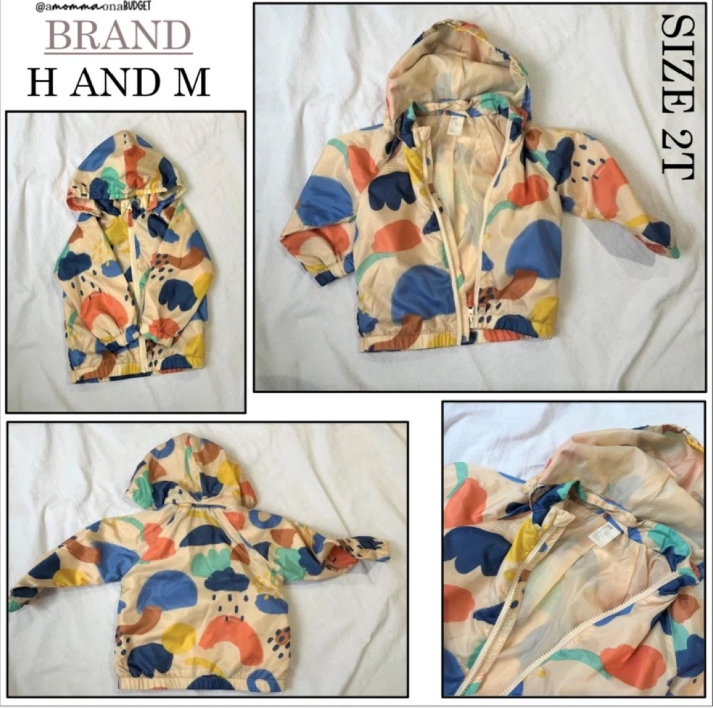 Selling a cute H&M kids' rain jacket! It's size 2T and features a fun, colourful pattern. Perfect for keeping your little one dry on those drizzly days