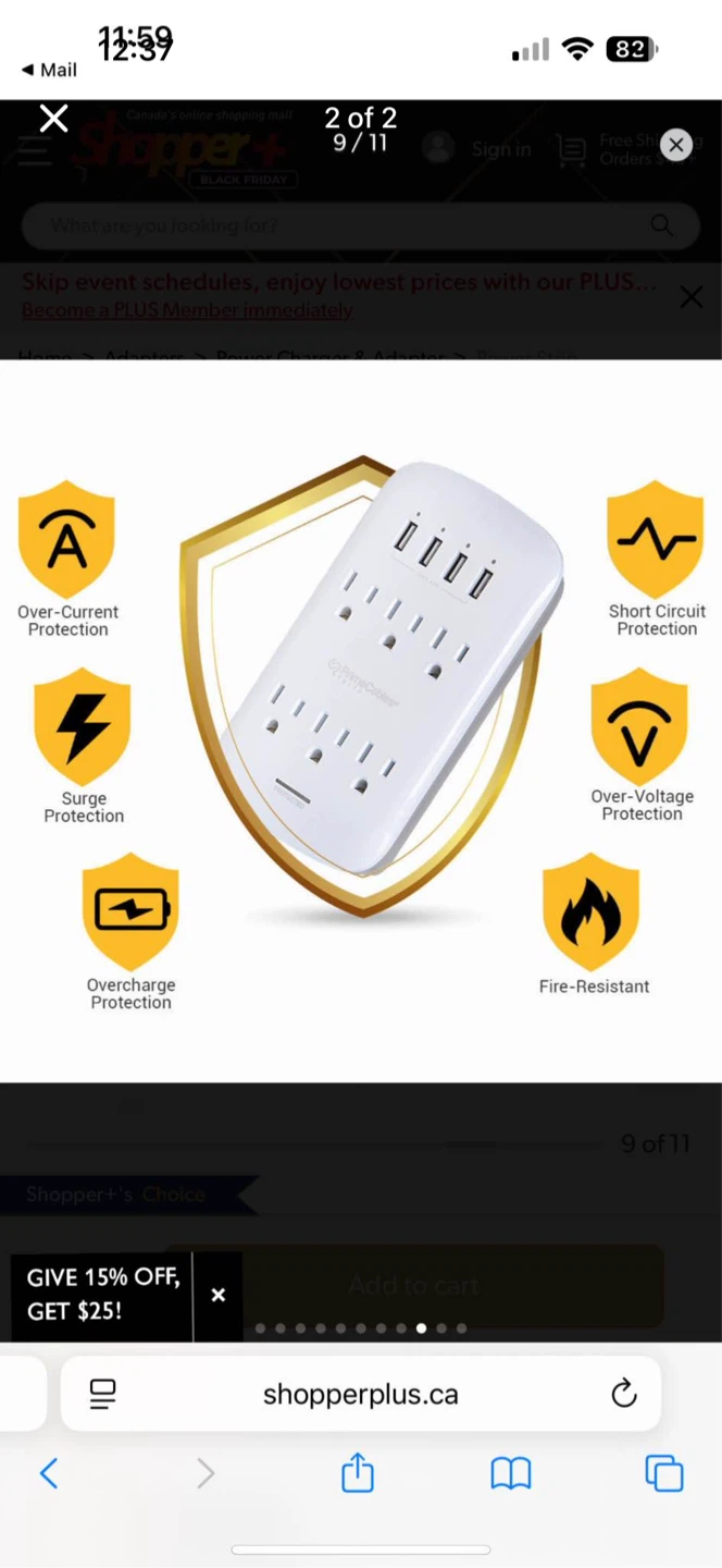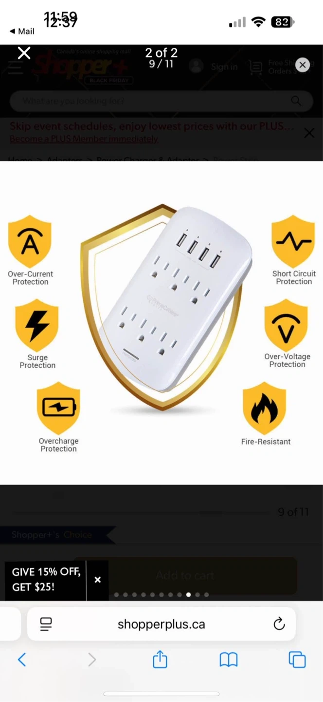 Selling a PowerCenter surge protector. It features 6 AC outlets (1875W) and 4 USB-A ports (5V/4.2A). It also has surge protection and is fire-resistant