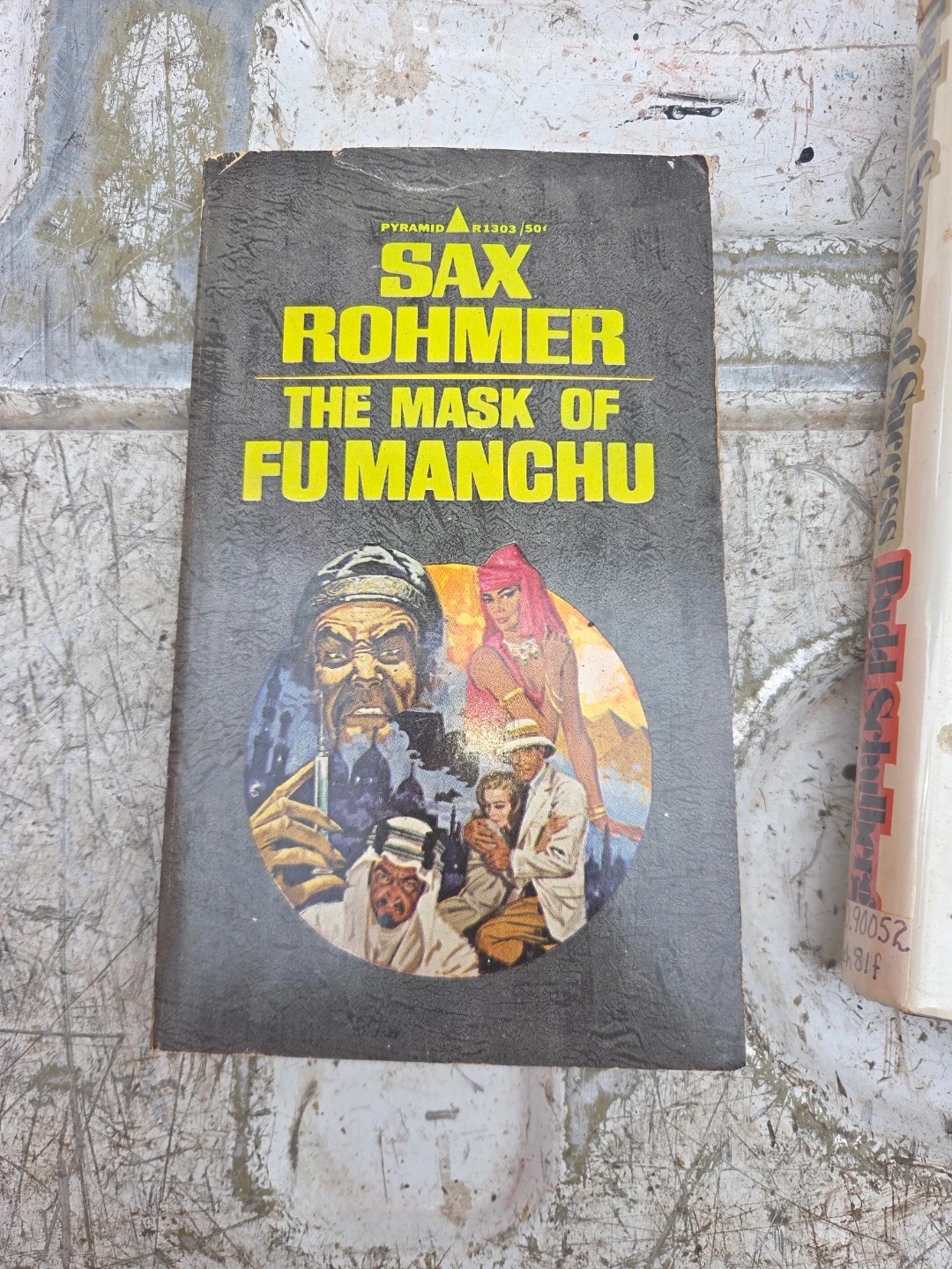 Selling the book 'The Mask of Fu Manchu' by Sax Rohmer. It's a classic adventure and mystery novel. Perfect for anyone who enjoys thrilling stories and classic literature!