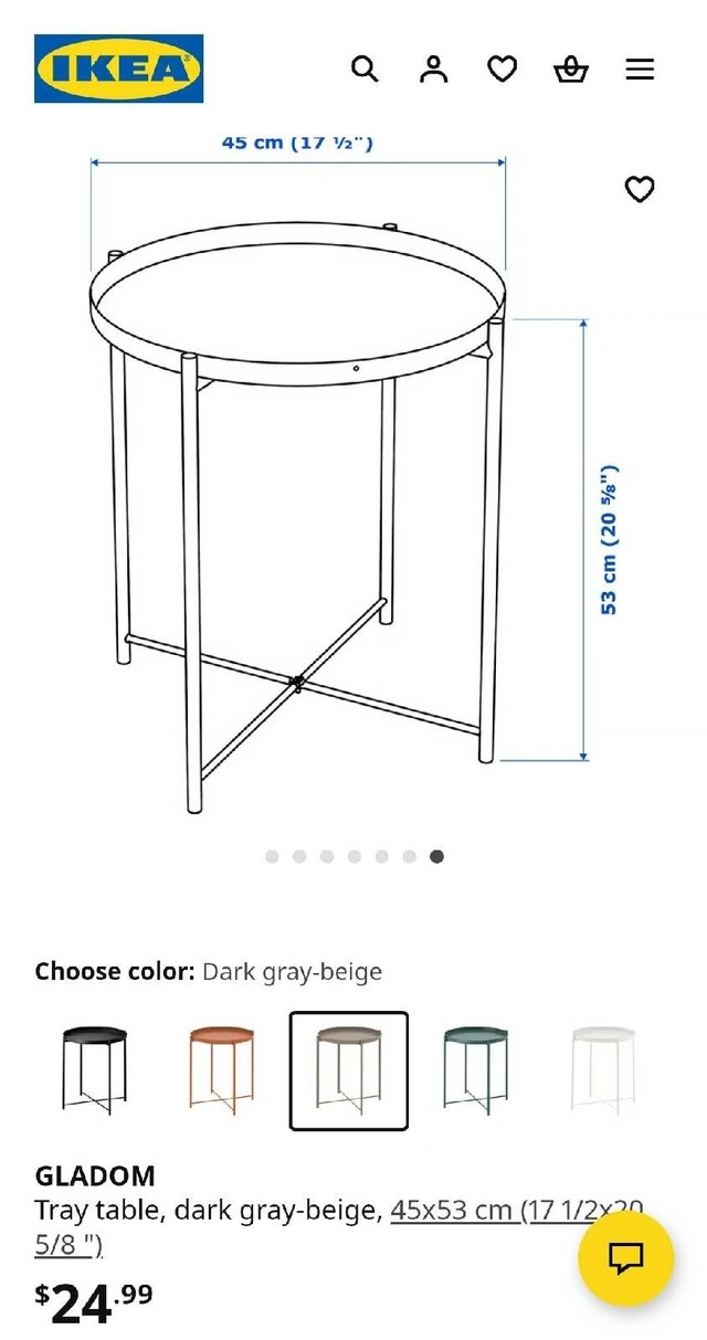 ➡️This sleek, dark grey-beige Ikea Gladom tray table, measuring 45x53 cm, is perfect for adding a touch of modern simplicity to any room. This used table is in great condition and ready to serve as a stylish accent piece.