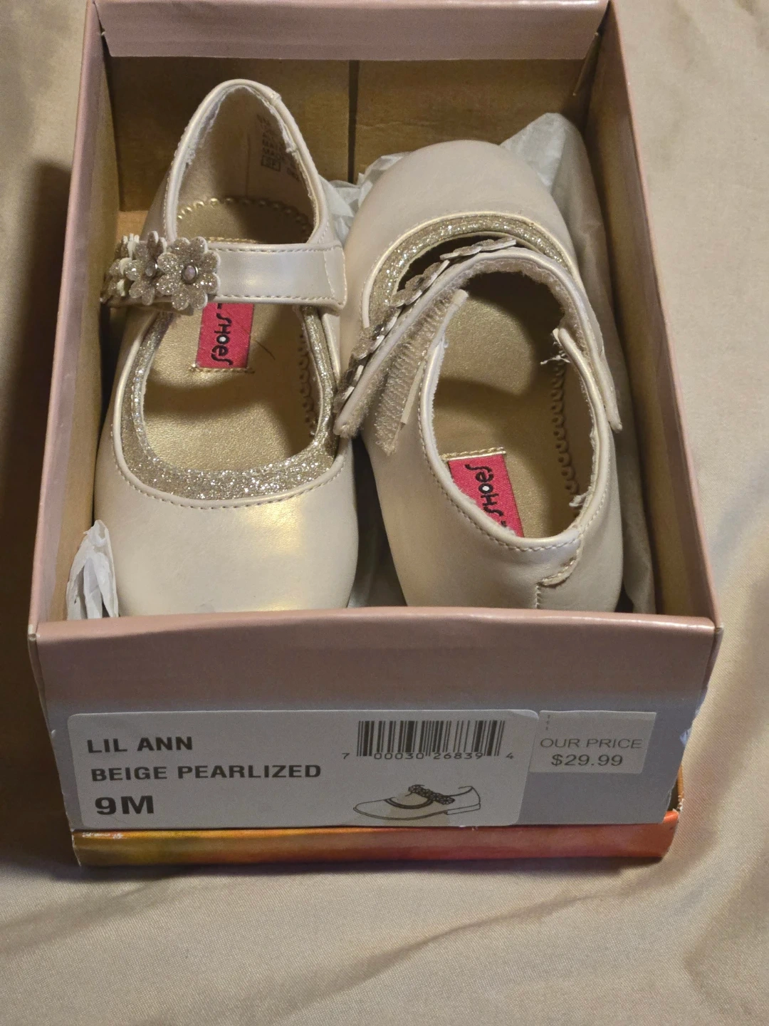 Selling a pair of Rachel Shoes Lil Ann in beige pearlized color, size 9M.