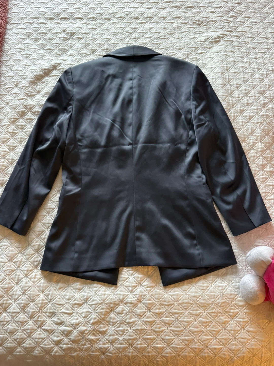Selling a H&M blazer in a sleek grey colour. It's a size 4 and in great condition. Perfect for adding a touch of sophistication to any outfit!