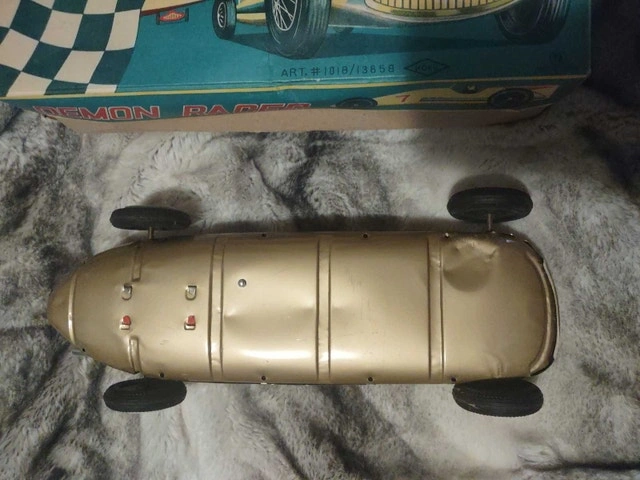 Used racer. In okay condition, car has 2 dents, definitely been used. Box has wear from storage. If the ad is up the item is available. Cash only and pick up only between 5:30pm-9pm weekdays, weekends anytime reasonable generally. Price is firm. It may take a few hours to respond for me when I'm at work during the weekdays. A lot of scammers and time wasters on here now I see.