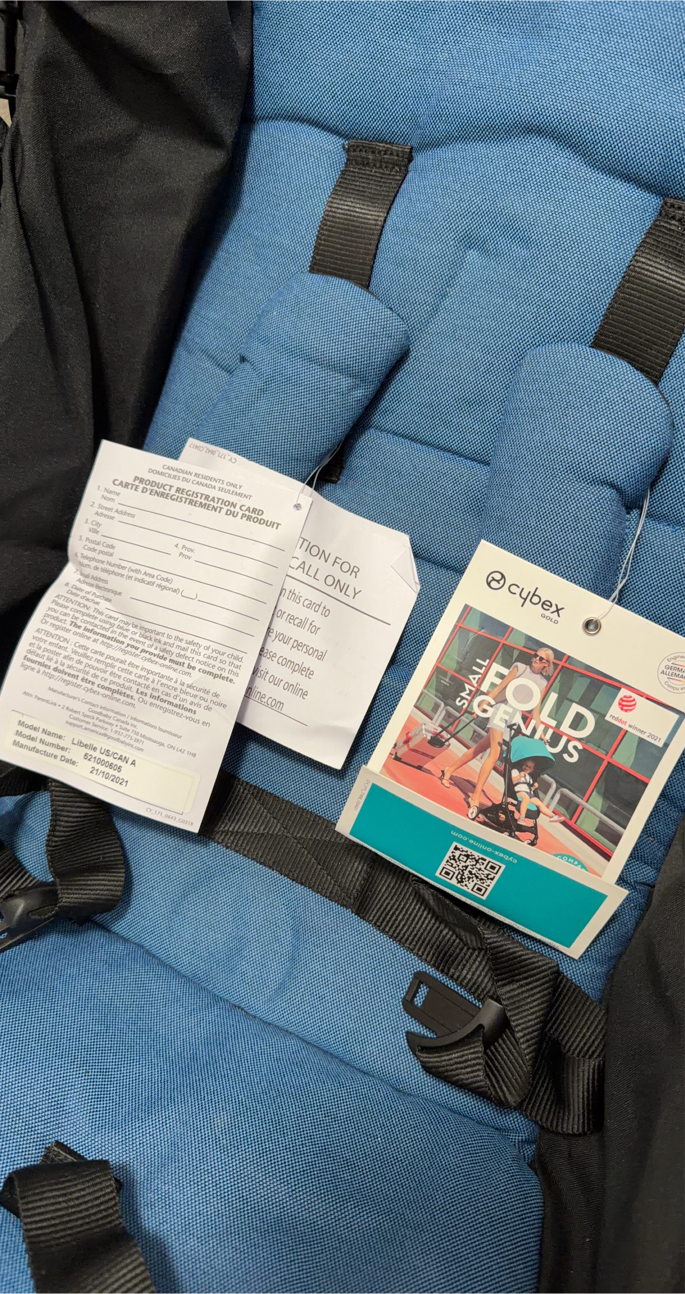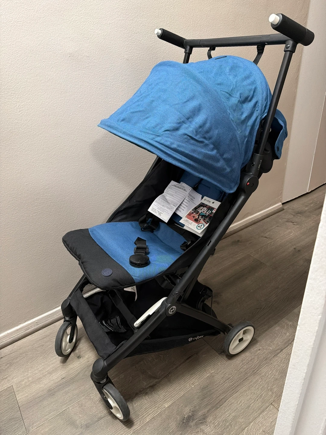 Selling a Cybex Libelle stroller in blue! It's super lightweight and has a small fold, making it genius for travel and storage. The manufacturing date is 20210628.