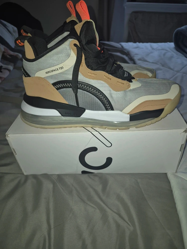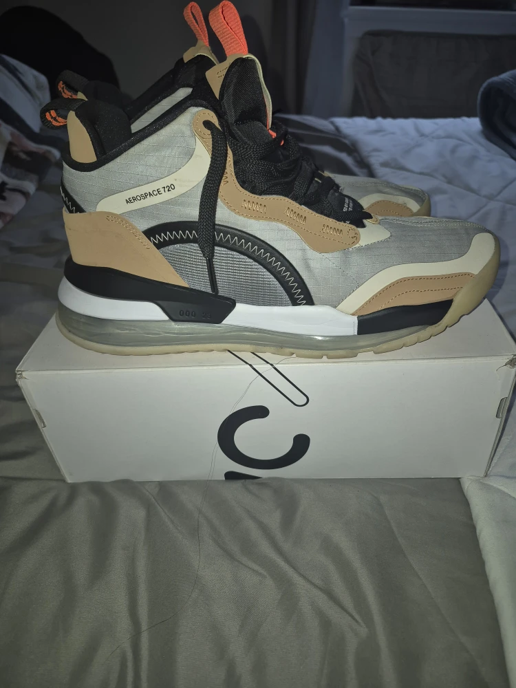 Selling a pair of Nike Jordan Aerospace 720 shoes in size 11.5. They come with the original box. The shoes have a unique design and are in good condition. Feel free to ask any questions!