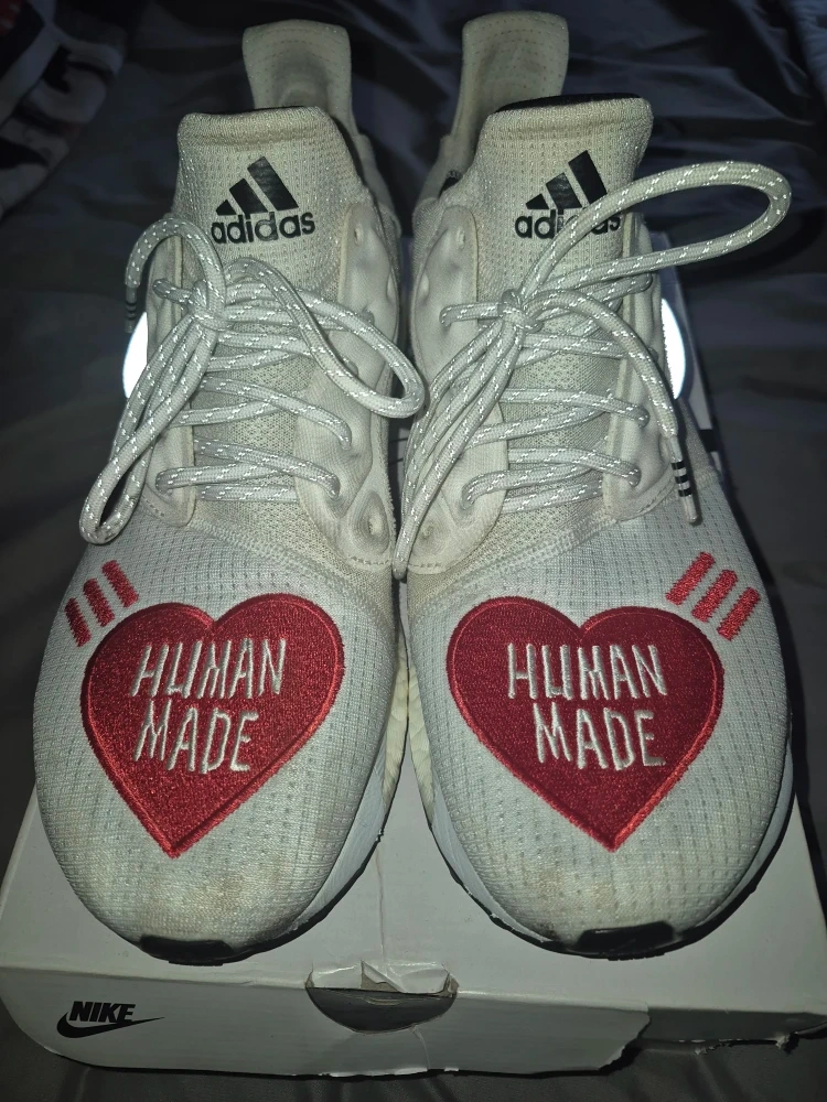 Selling a pair of Adidas x Human Made Solar Boost sneakers in US size 11. They show some signs of wear, as you can see in the pictures, but they still have a lot of life left! The box is included.
