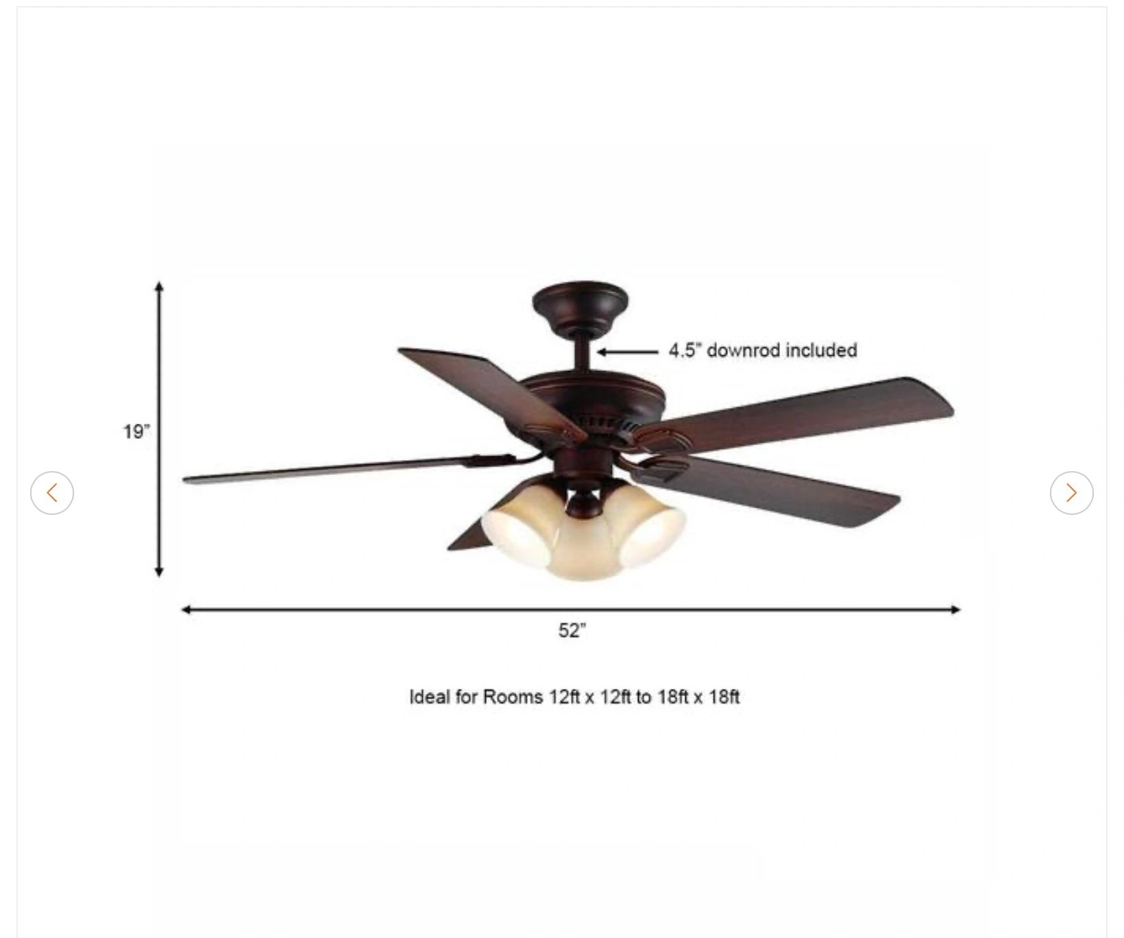 Campbell 52 in. Indoor LED Mediterranean Bronze Ceiling Fan with Light Kit, Downrod, Reversible Blades and Remote