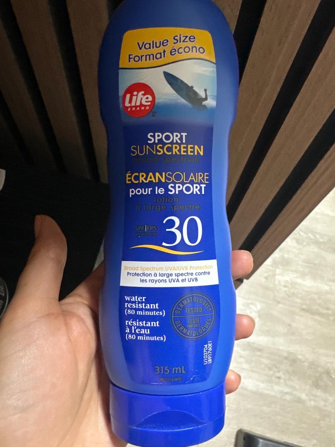 Selling a bottle of Life Sport Sunscreen, perfect for staying protected during outdoor activities! This is the value size bottle. It offers broad spectrum UVA/UVB protection and is water resistant for up to 80 minutes. Dermatologist tested