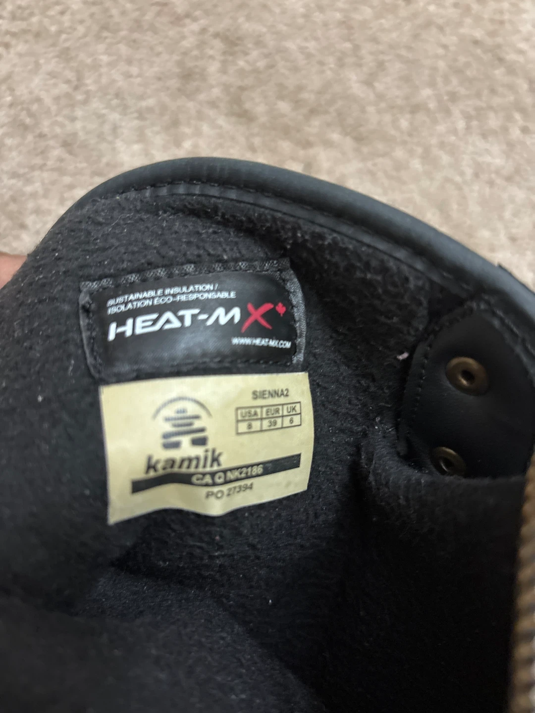 Selling a pair of Kamik Sienna2 winter boots for women. They're a size 8 and feature sustainable insulation with HEAT-MX technology. Perfect for keeping your feet warm and dry this winter!