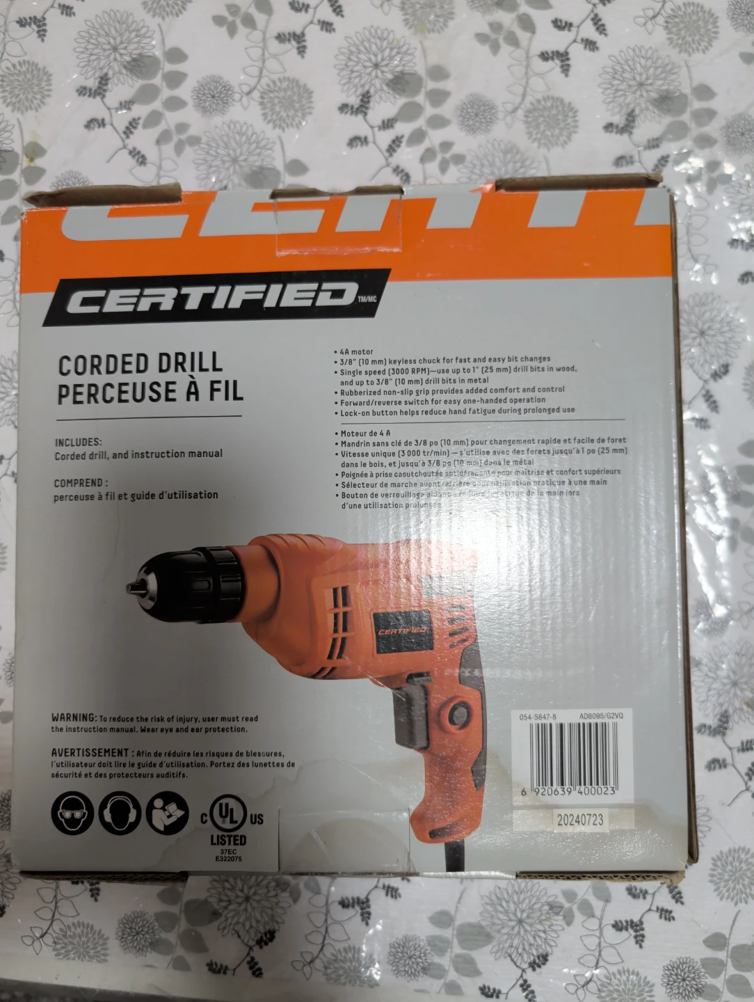 Selling a Certified corded drill in good condition! It includes the drill and instruction manual. The drill features a 4A motor, a 3/8" (10 mm) keyless chuck for fast and easy bit changes, and is suitable for drilling in wood, metal, and up to 3/8" (10 mm) drill bits in metal. It also has a forward/reverse switch for easy one-handed operation.