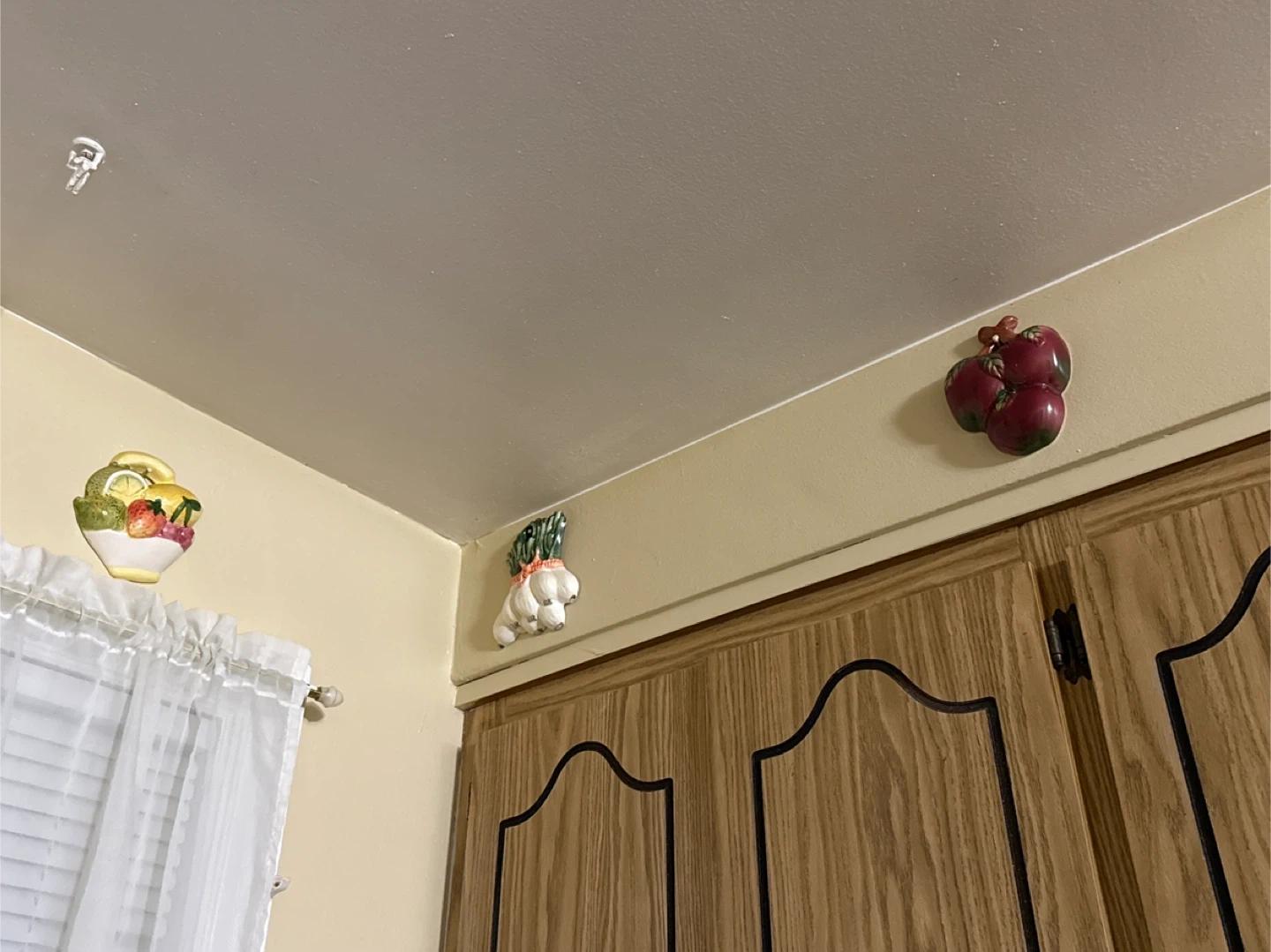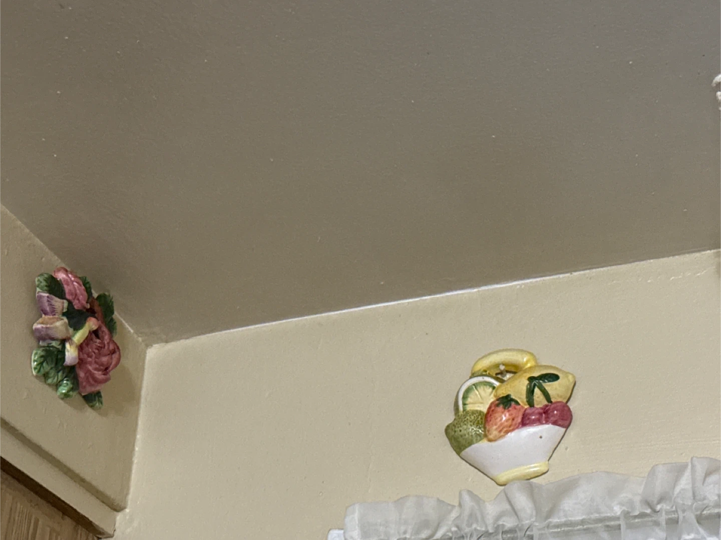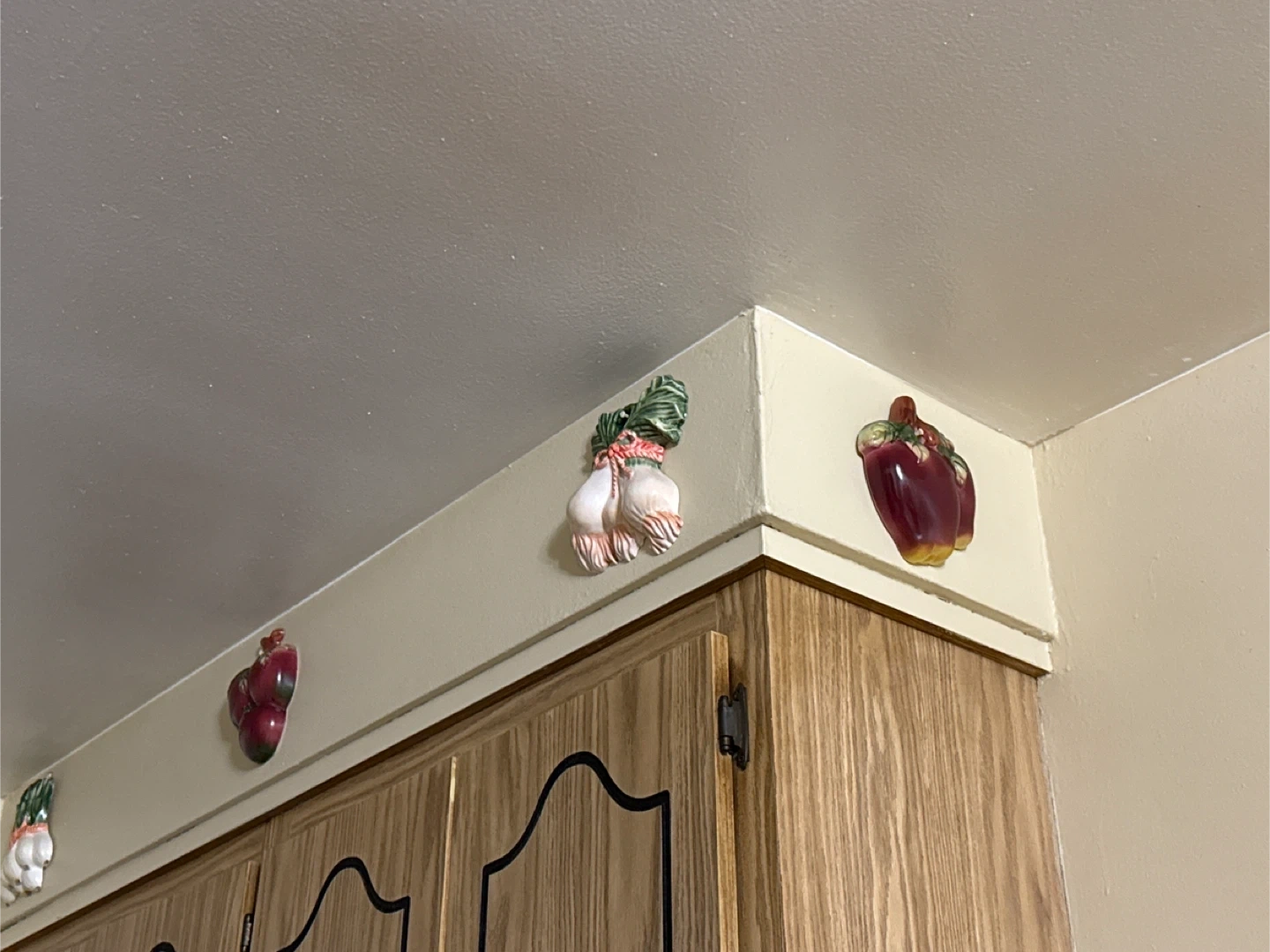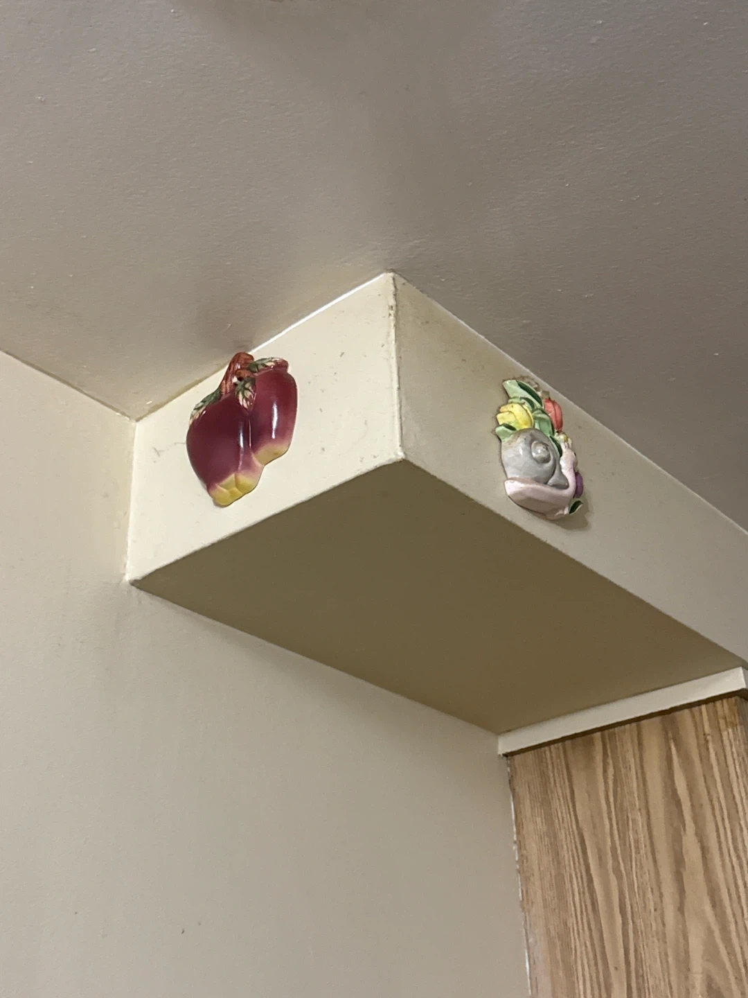 I have a 10 pieces collection of vintage ceramic wall decorations. They feature various fruits and vegetables, adding a touch of retro charm to your kitchen or dining area. These pieces are in good condition and ready to brighten up your space!