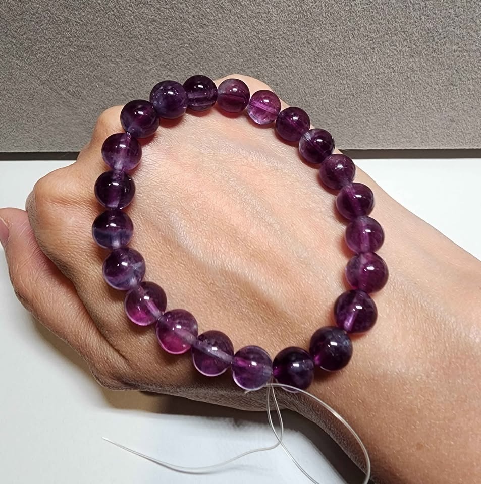 New Natural Mermaid Fluorite crystal bracelet 8.6mm beads Fluorite is believed to be a powerful healer and it may also increase concentration. It is often used as a meditation stone. 功效 1.作為純淨和靈性的智能之石,螢石有助於增強思考的清晰度和集中。 2.螢石散發出鎮靜的能量,有助於緩和暴躁的情緒和降低緊張感。 3.它能夠消除工作和日常生活中的壓力,使人感覺更加輕鬆和平靜。 4.螢石能夠刺激創造力和靈感,特別適合需要新思維和創新的人。 5.它有助於強化分析和決策能力,使其更加精確和明確。 適合佩帶人群/推薦配戴人群 學生、工作壓力大的人、常進行思考或需要靈感的族群、希望突破傳統思維的人。
