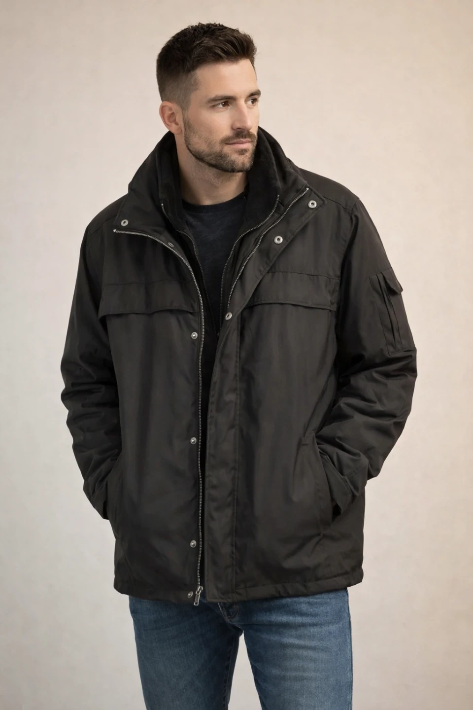 Here's a black winter jacket that's in great condition! 🧥 It's perfect for keeping warm during those cold Canadian winters. 🇨🇦 It has a zipper and button closure, and a quilted lining for extra warmth. 🔥 A stylish and functional addition to your winter wardrobe! ✨ #Jacket #Winter #Fashion #Warmth #Canada #Style #Outerwear #Clothing