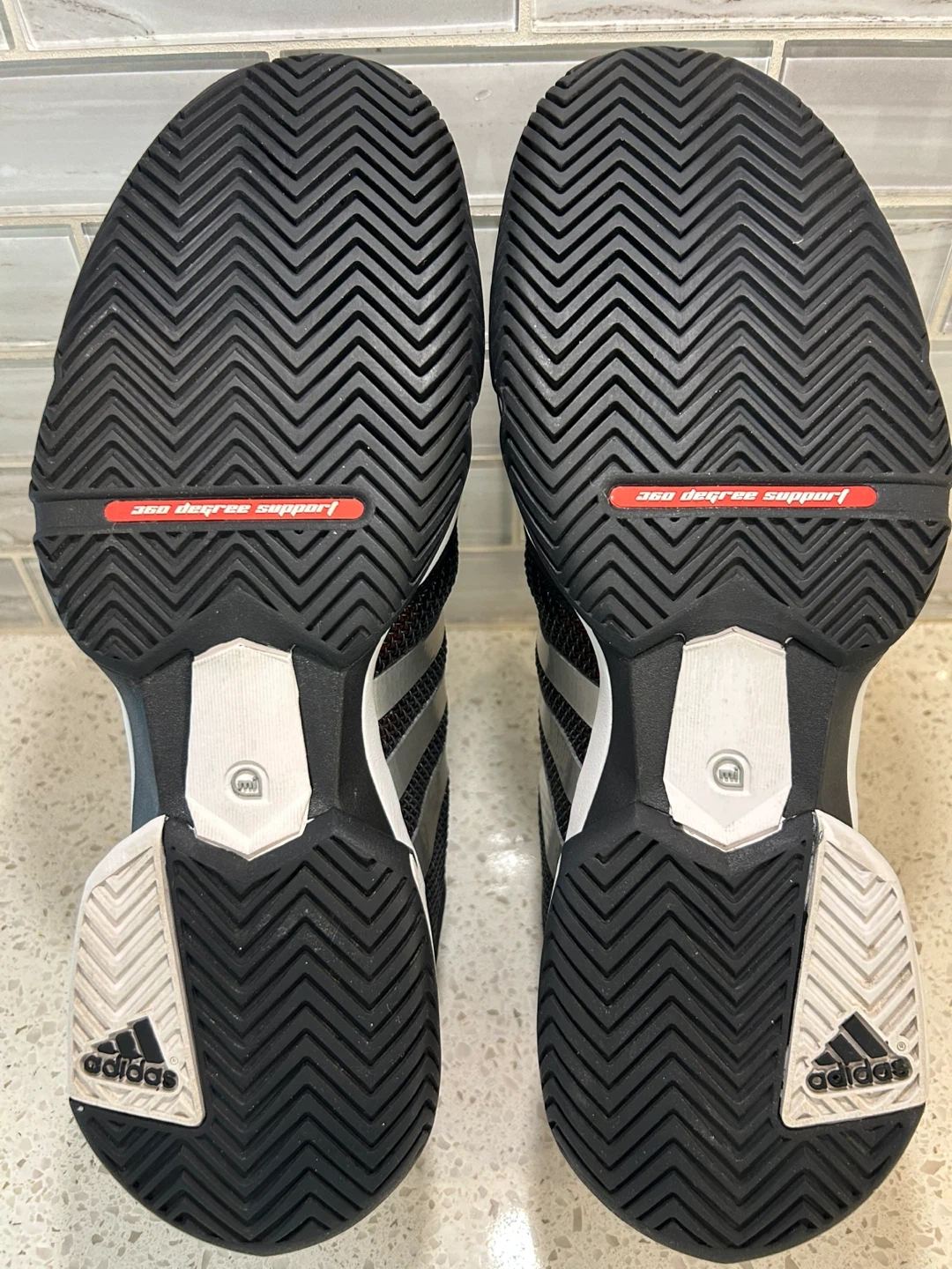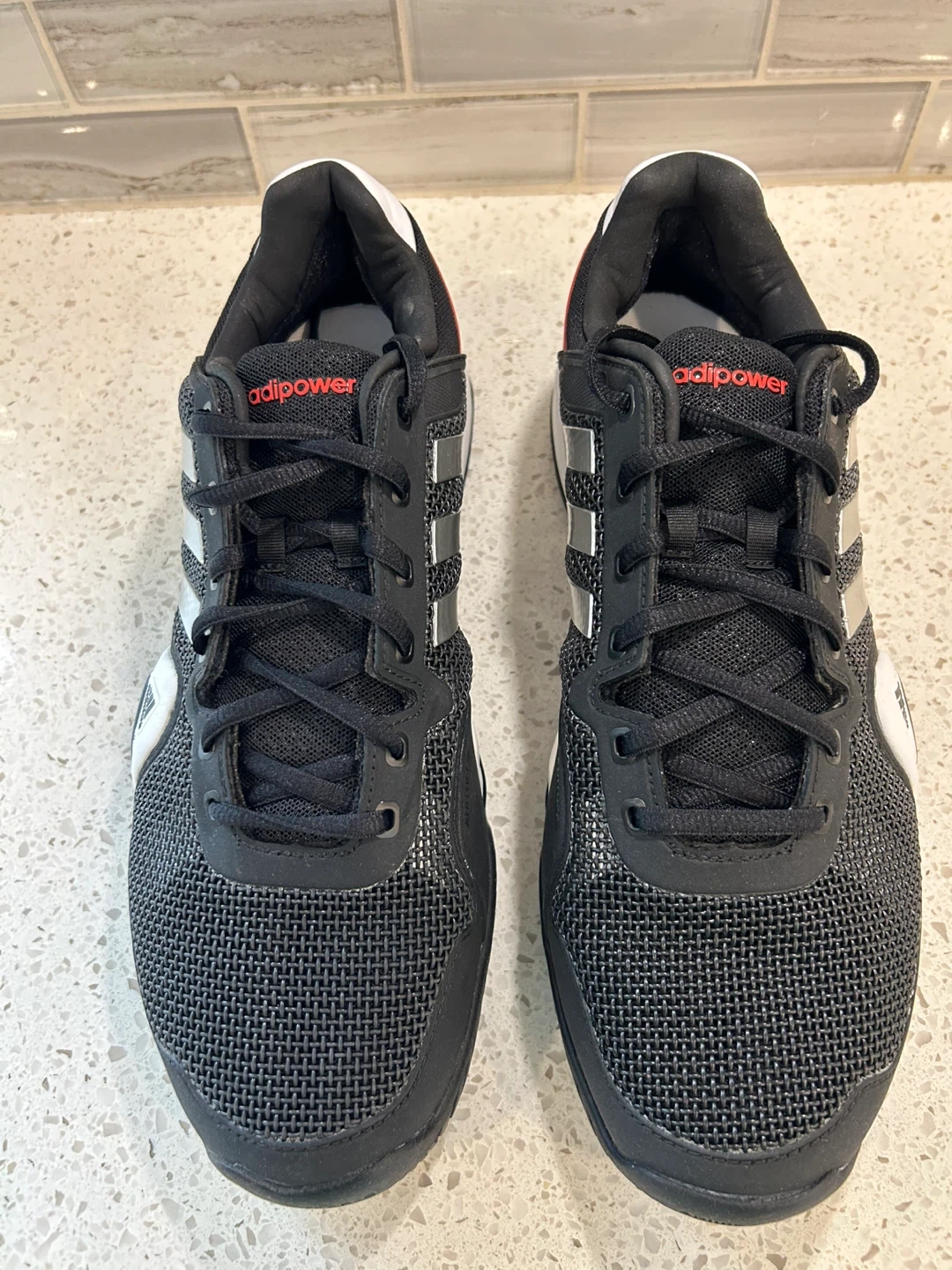 Selling a NEW pair of Adidas adipower Barricade 8 tennis shoes in US size 11.5! They come in the original box. The shoes feature a black, silver, and red colour scheme. Great for hitting the courts!