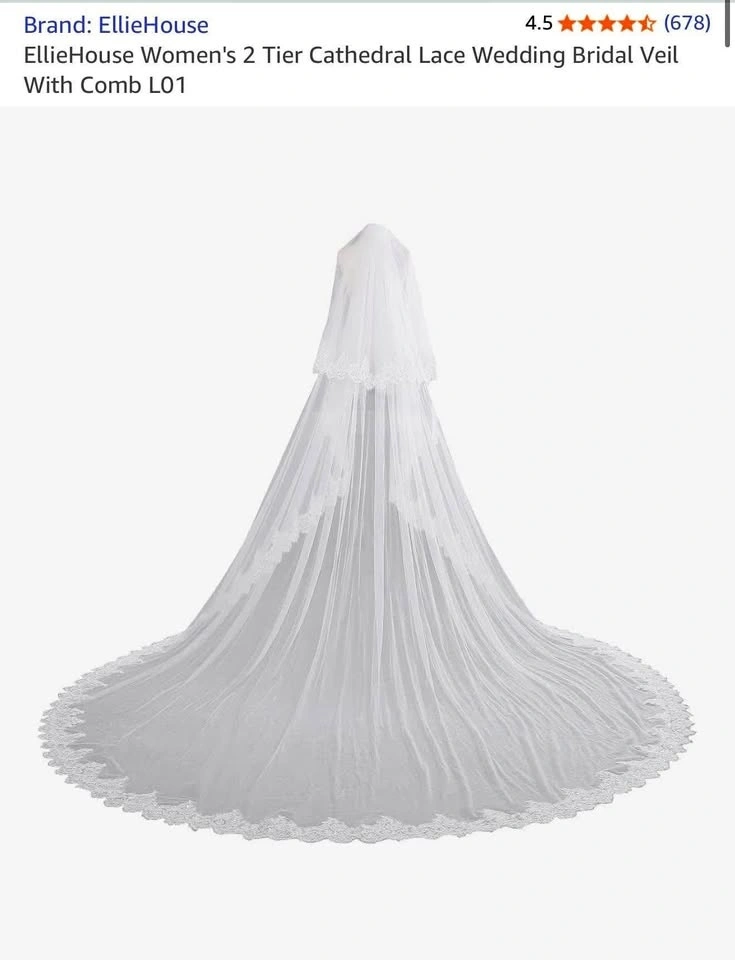 EllieHouse Wedding Veil Cathedral Lace with Comb