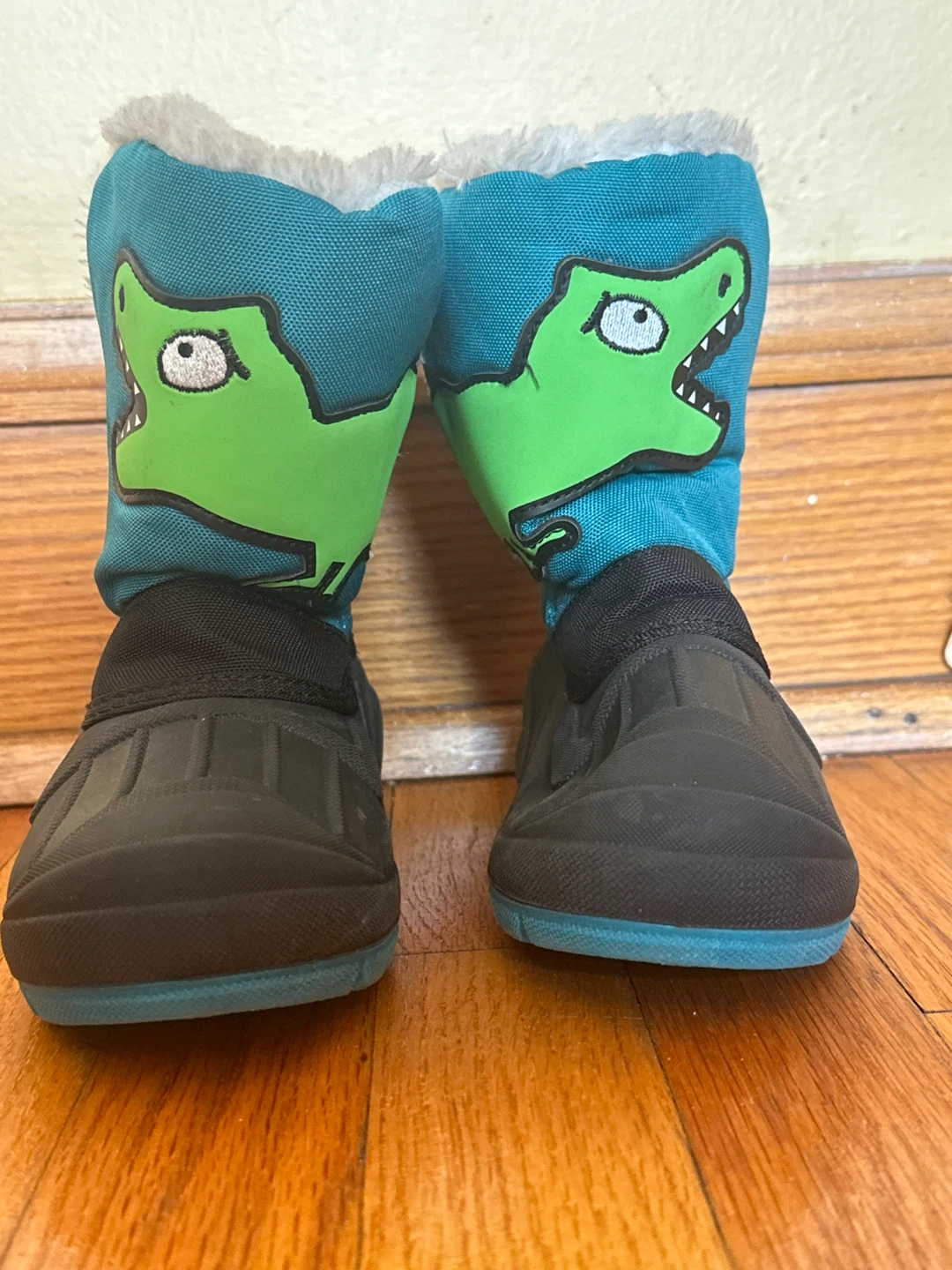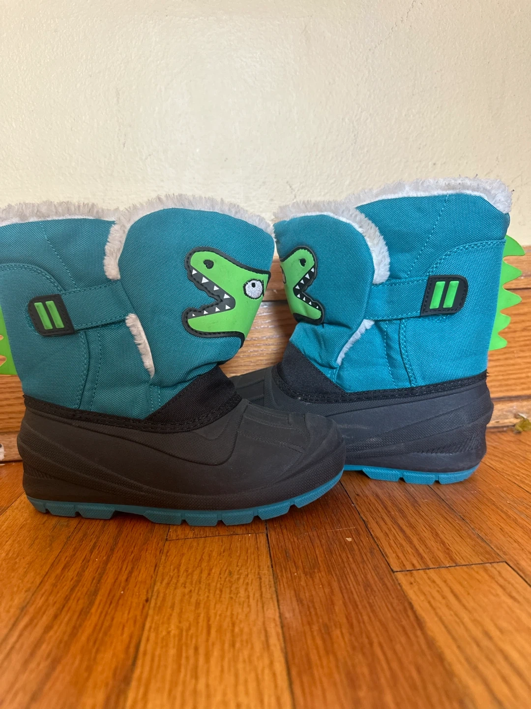 These adorable dinosaur winter boots are perfect for keeping your little one's feet warm and dry! They feature a fun dinosaur design and a cozy, fuzzy lining. The size is 12