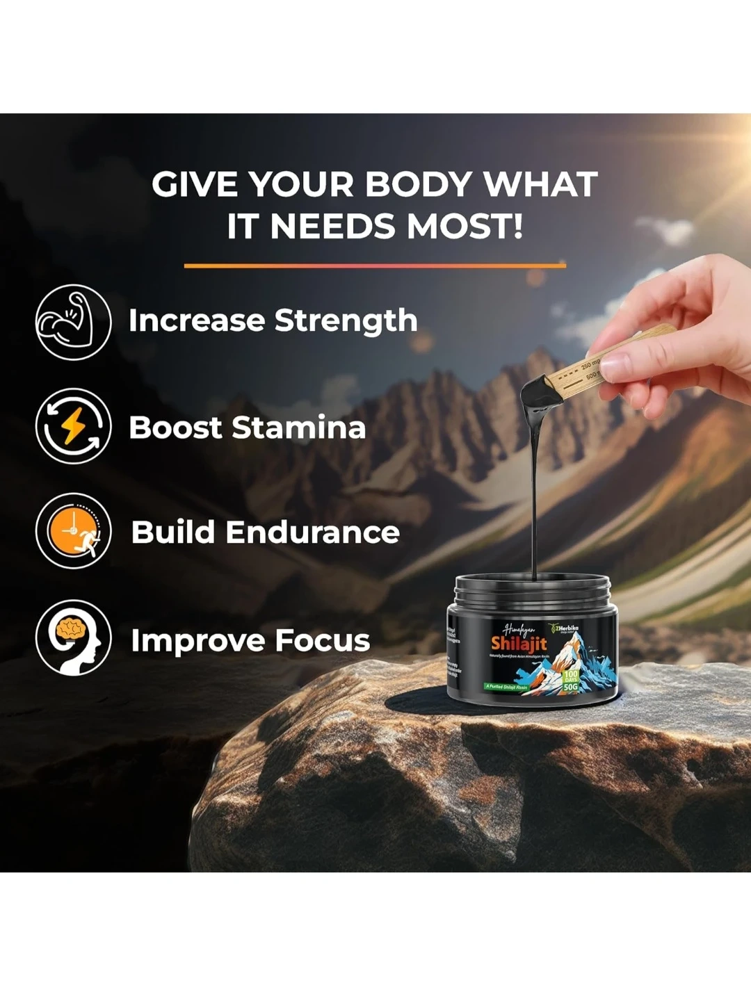 Boost Energy, Stamina & Immunity Rich in antioxidants, Our pure shilajit protects cells from damage and converts food into energy. Improve your physical endurance, manage stress more effectively, and support your immune system—all with the power of natural shilajit.