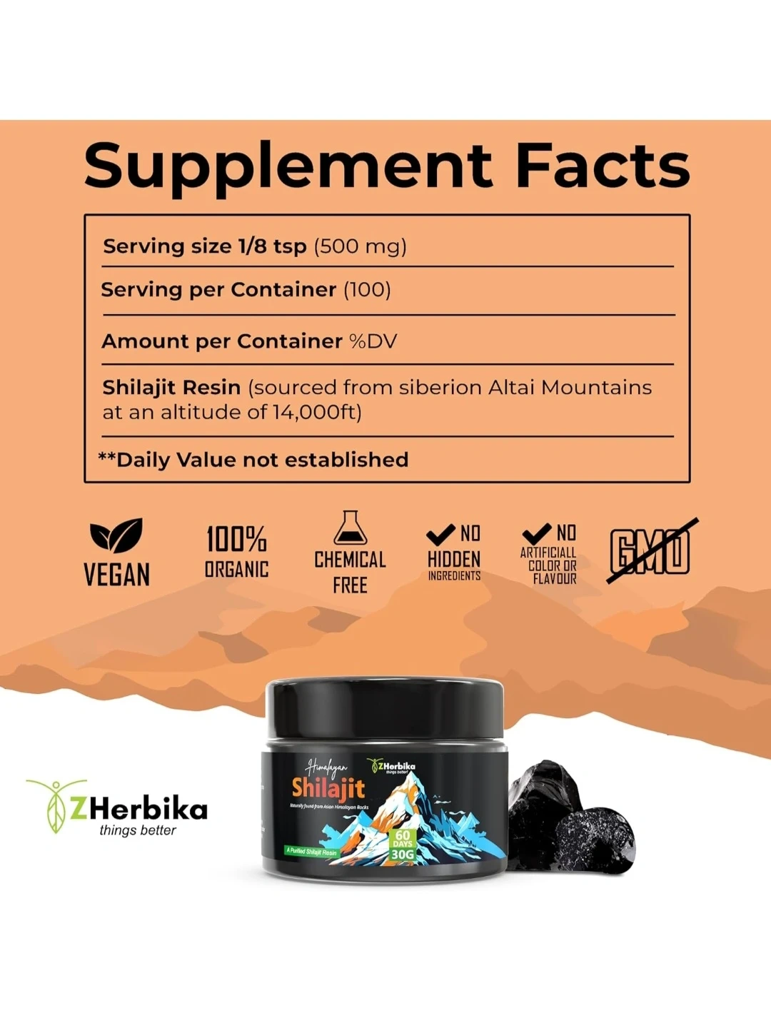 Pure Himalayan Shilajit Harvested at 18,000 ft Experience the unmatched potency of Zherbrika Pure Himalayan Shilajit Resin, sourced from the untouched peaks of Pakistan and Tajikistan. This authentic resin is formulated to boost vitality, energy, and well-being for both men and women.
