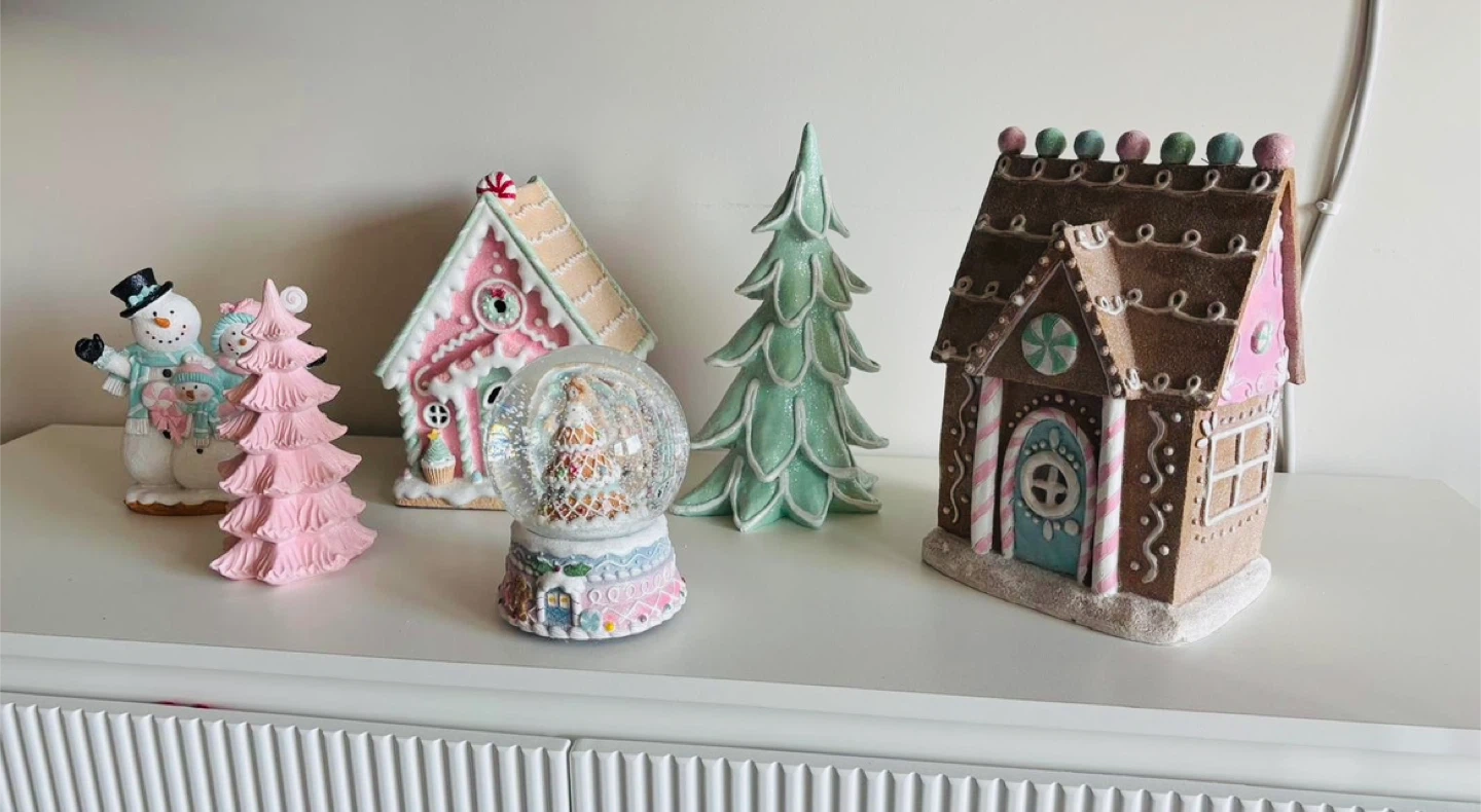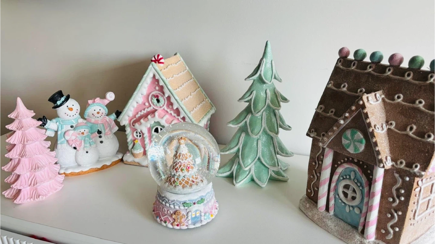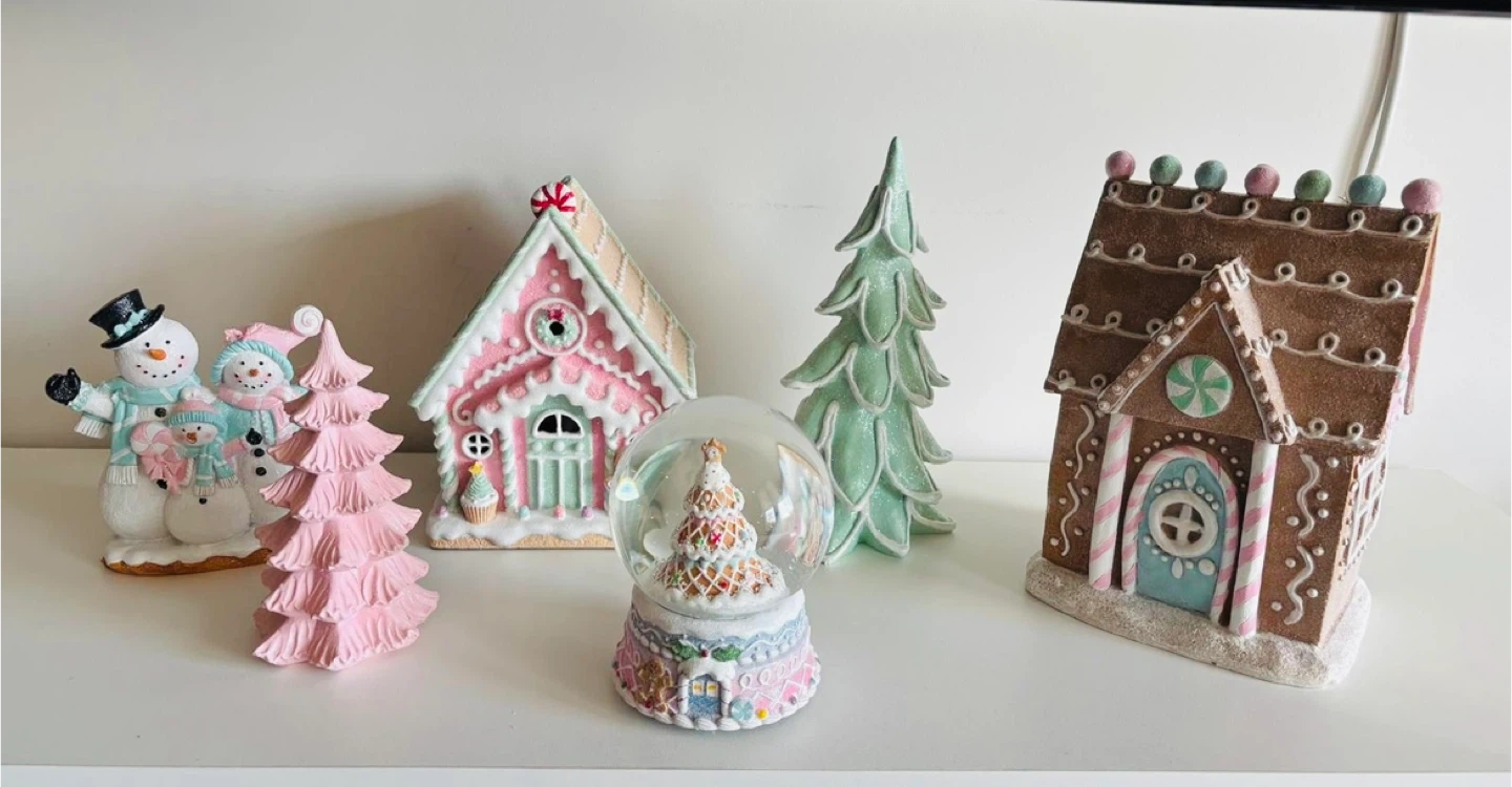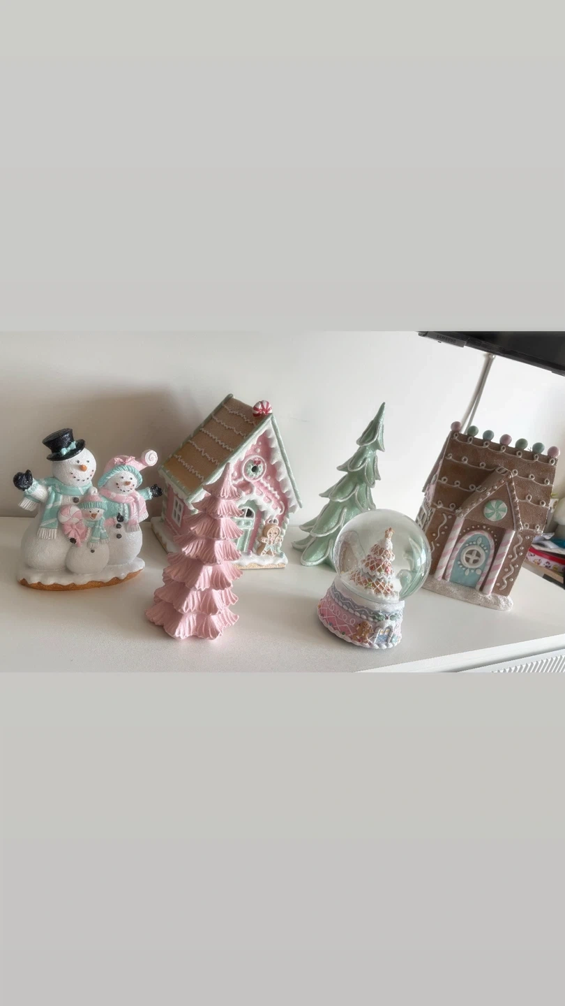 Selling a cute Christmas village decor set! Includes a snow globe, gingerbread houses with light, snowmen, and Christmas trees. Perfect for adding a festive touch to your home this holiday season.
