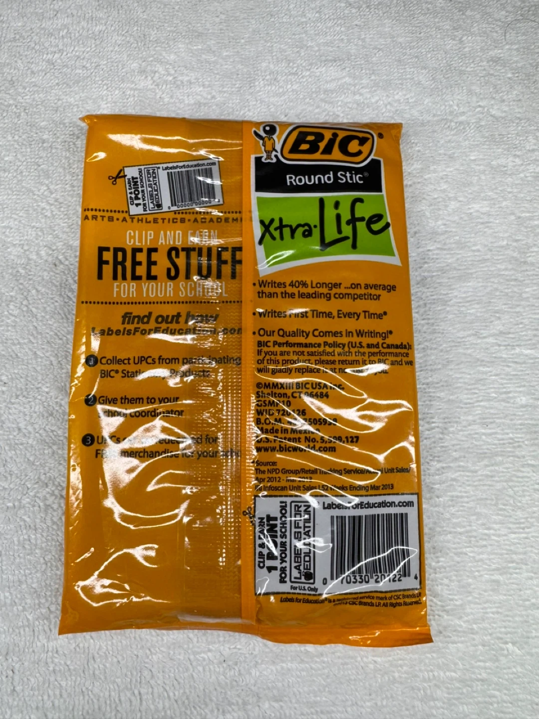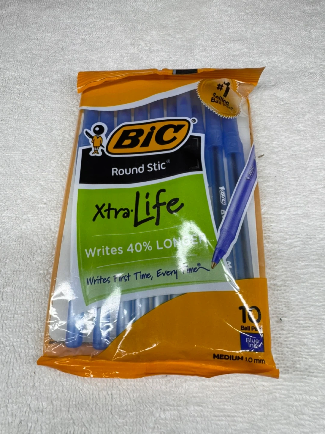 Selling a pack of BIC Round Stic Xtra Life pens! This is a 10-pack of medium point blue ink pens. They write 40% longer on average than the leading competitor and write first time, every time