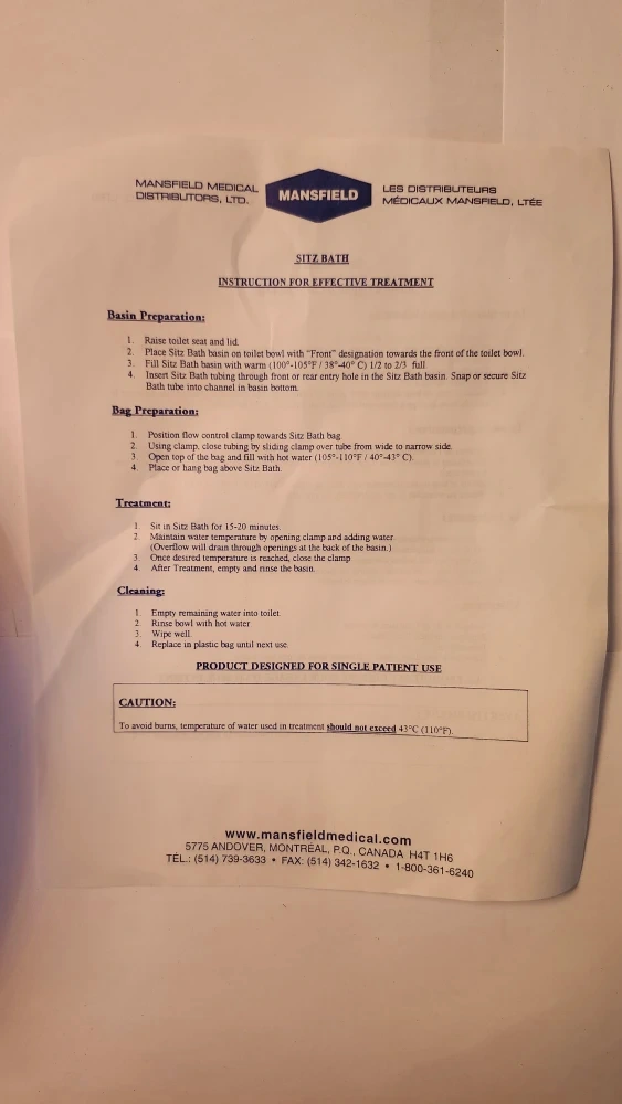 Selling a brand new Mansfield Deluxe Sitz Bath! It comes complete with all components and the original box. Perfect for post-surgery recovery or general hygiene. Easy to use and clean!