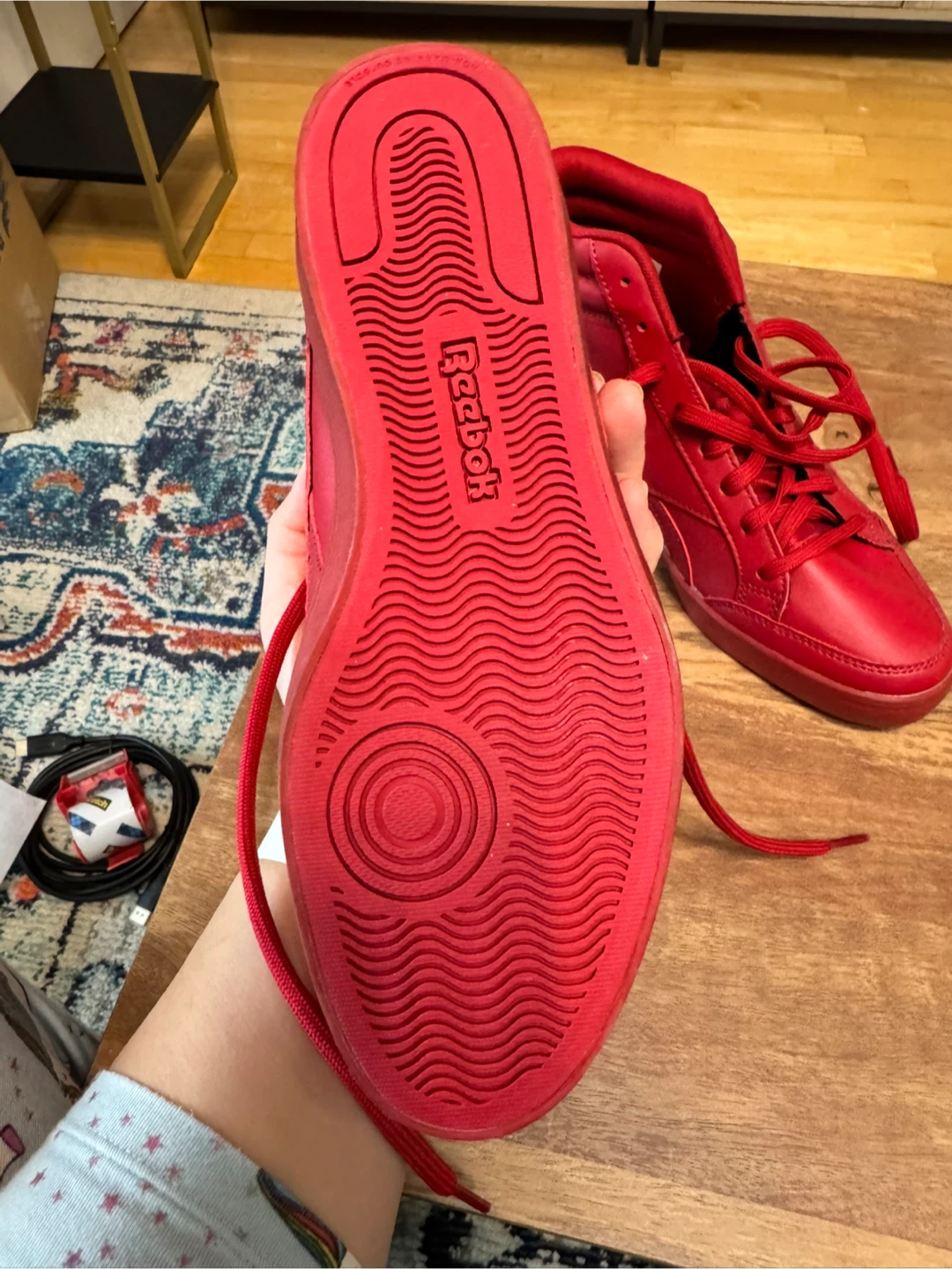 Selling a pair of Reebok high-top sneakers in a vibrant red color! They are brand new, never worn and ready for a new owner. The size is US 9.5.