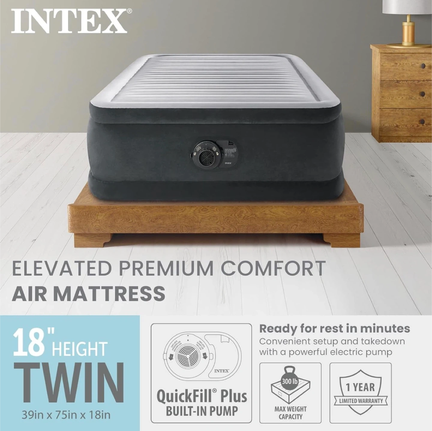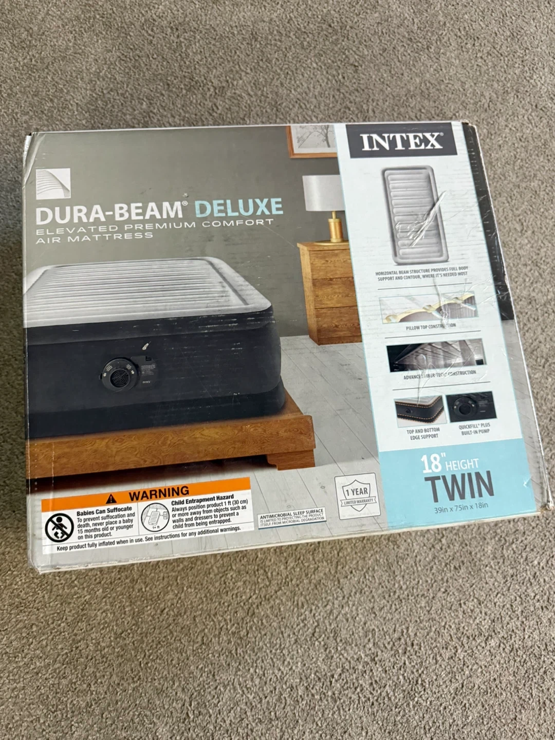 Description: Open Box, New Intex 64411ED Dura-Beam Deluxe Twin 18” Height Air Mattress.