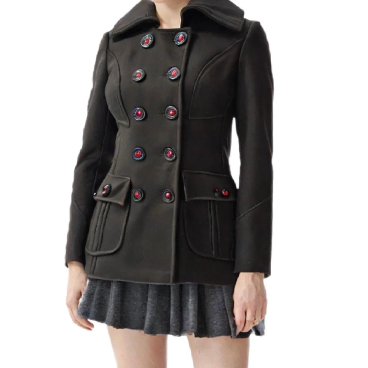 Miss Sixty Black Wool Blend Pea Coat Size XS
