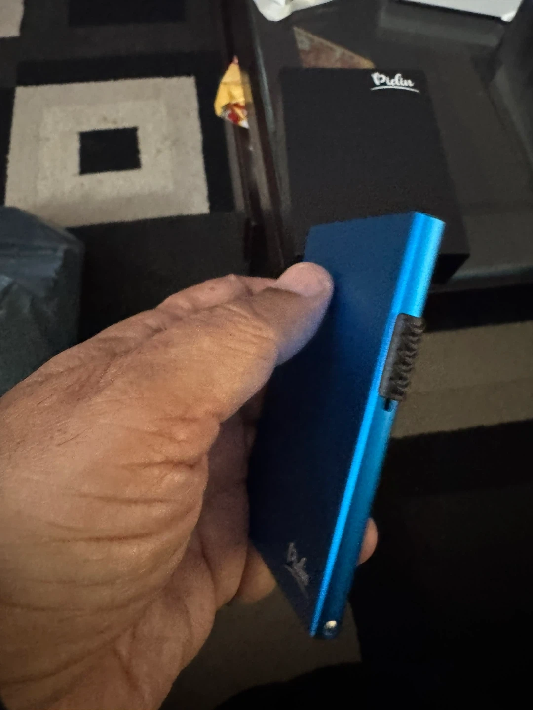 Selling a Pidin card holder in blue. It's in great condition and comes with its original box. Perfect for keeping your cards organized and secure!