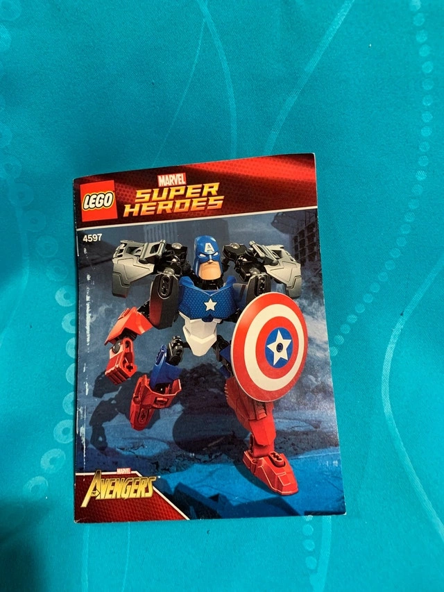 This is a great figure of Captain America in the Lego Hero Factory style, part of the Marvel Super Heroes collection. Includes instruction book. Missing the box.