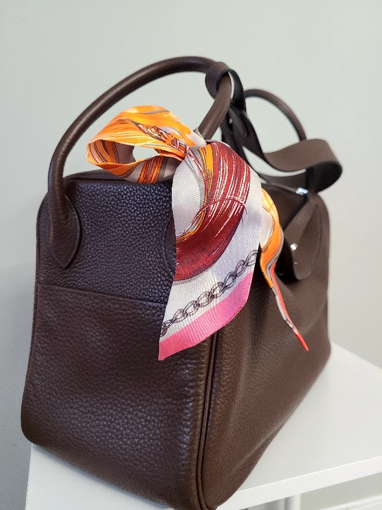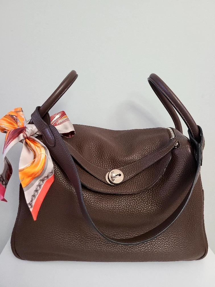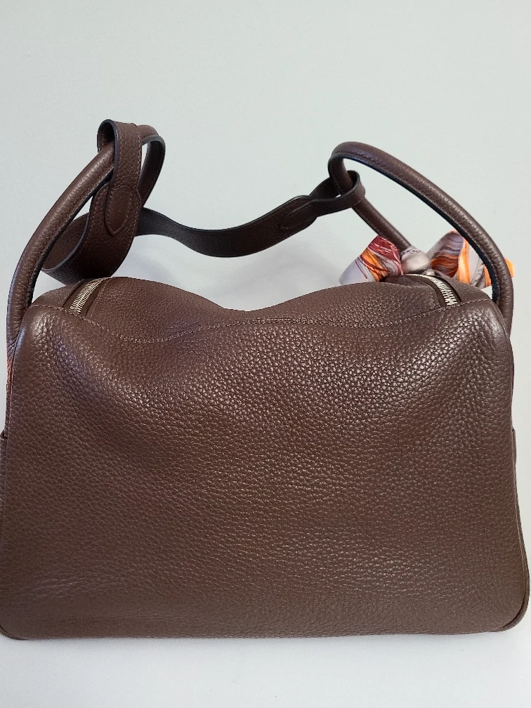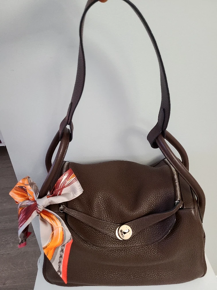 Selling a beautiful Hermès Lindy 30 handbag in a rich brown leather. It's in great condition and ready to add a touch of elegance to your wardrobe. The Lindy is known for its relaxed yet sophisticated style, perfect for everyday use or special occasions. Don't miss out on this classic piece!.It comes with a twilly(in the picture) and dust bag.