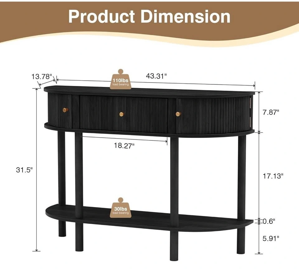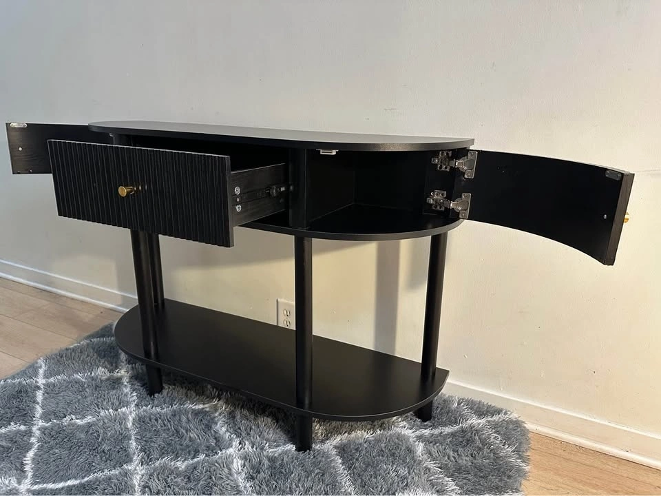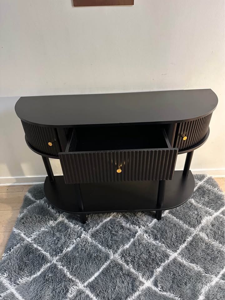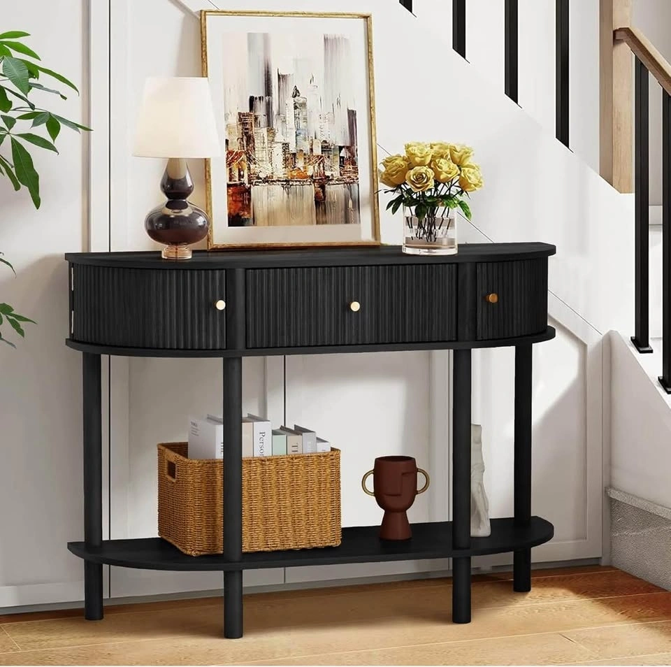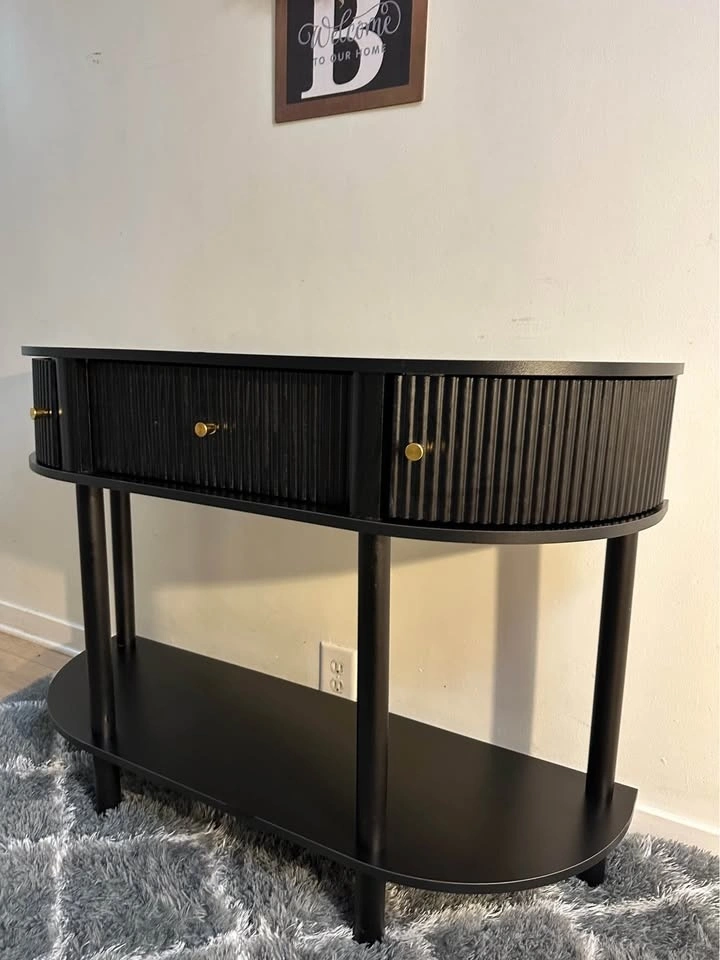 43.3 Inch Fluted Crescent Console Table, Modern Entrance Sofa Table with Storage, Narrow Wooden Decorative Tables/ Minimal details but it's new.