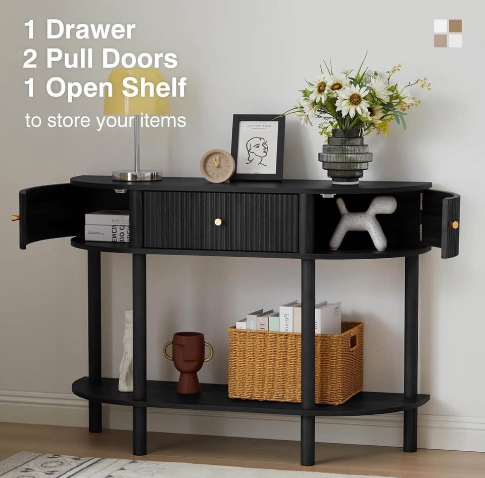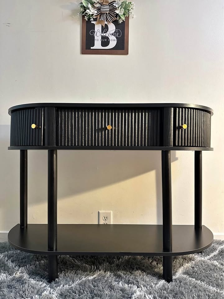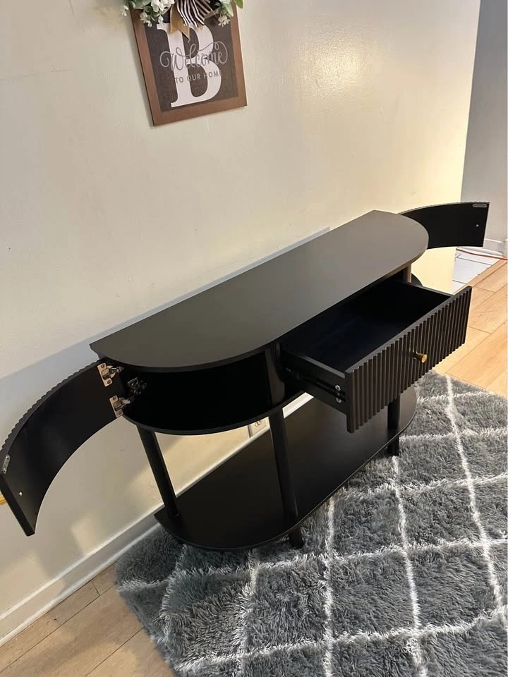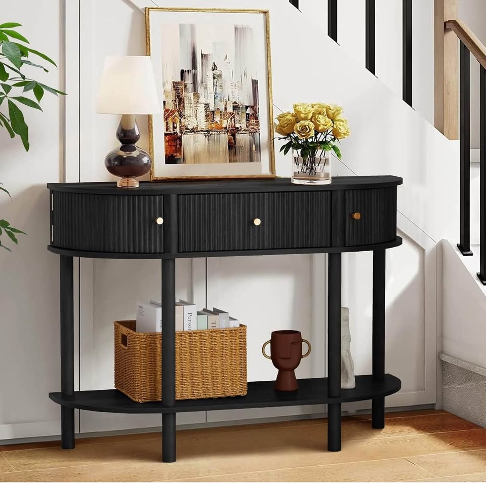 43.3 Inch Fluted Crescent Console Table, Modern Entrance Sofa Table with Storage, Narrow Wooden Decorative Tables/ Minimal details but it's new.
