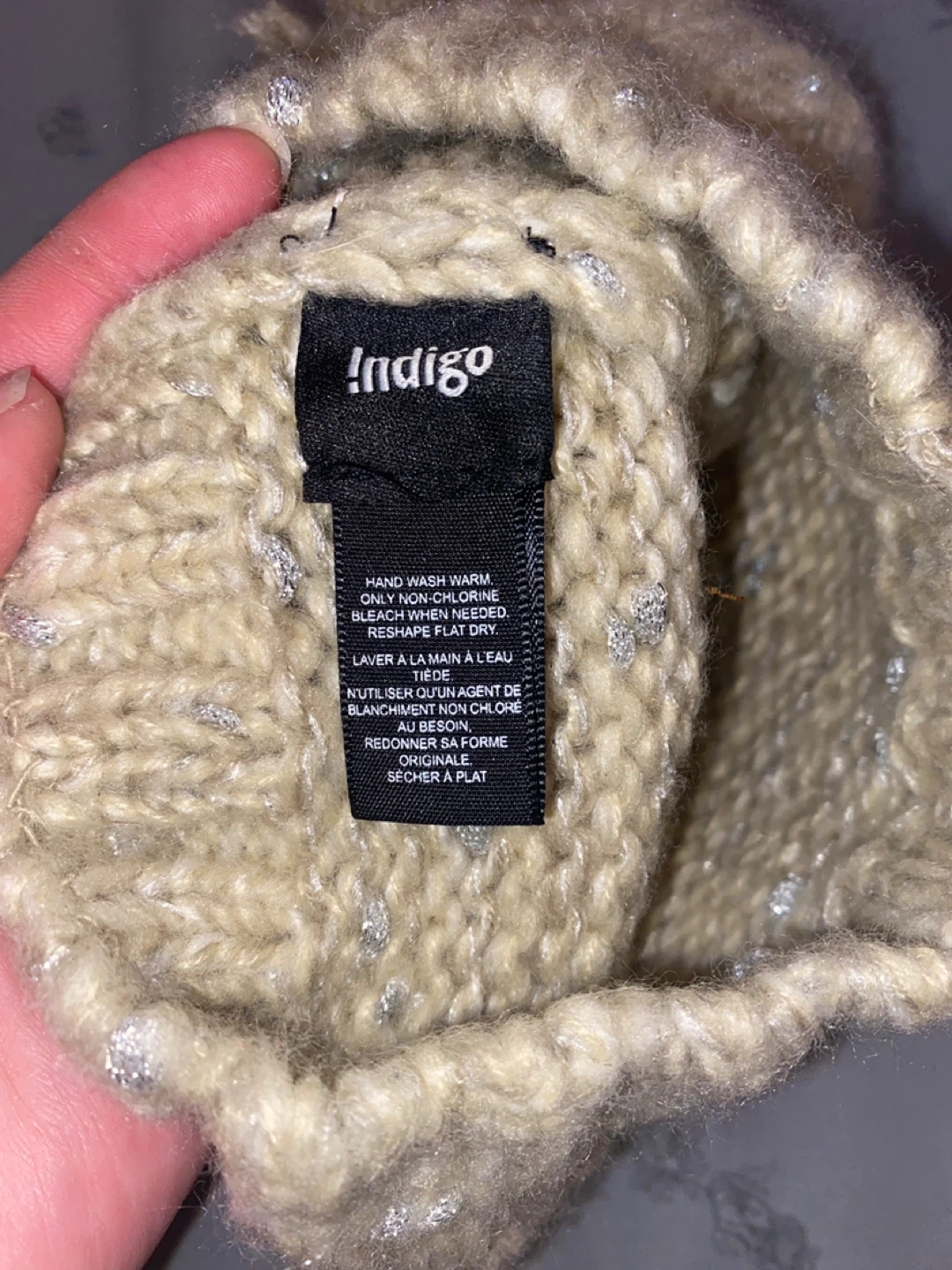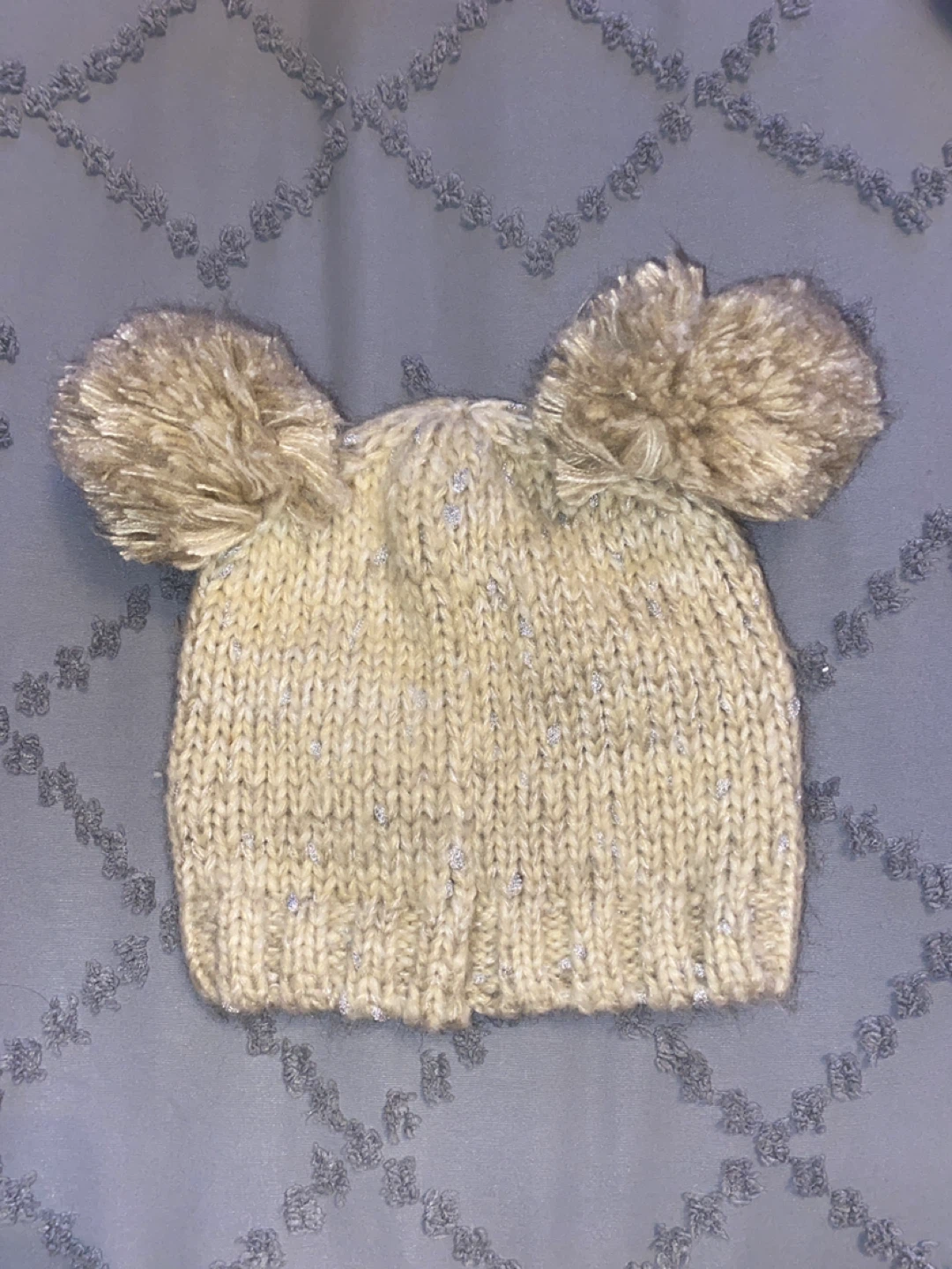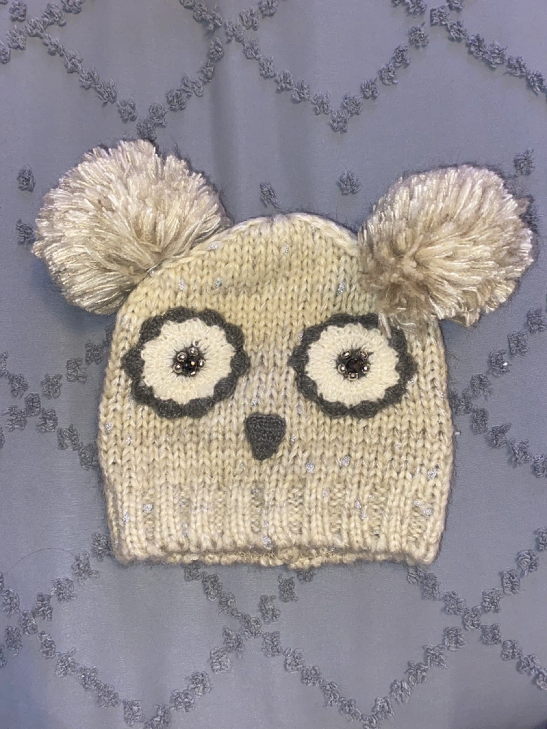 This adorable Indigo women’s small knit beanie is perfect for keeping warm and stylish! It features cute pom-poms and a unique bear design.