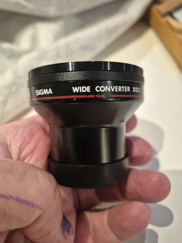 Selling a Sigma Wide Converter x0.5 lens for AF video cameras. It appears to have a 55 to 52 size.