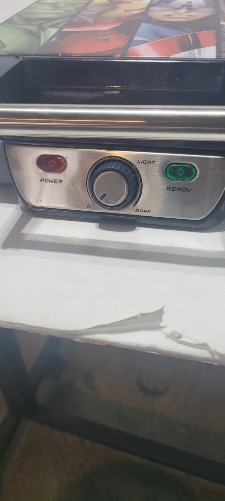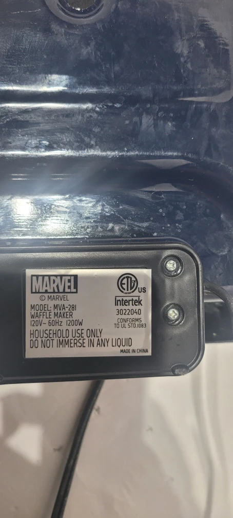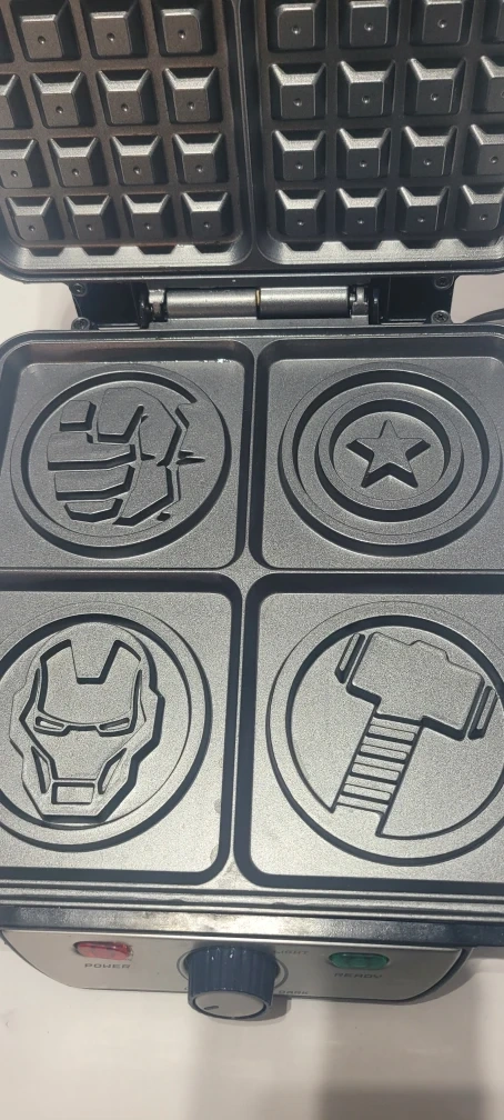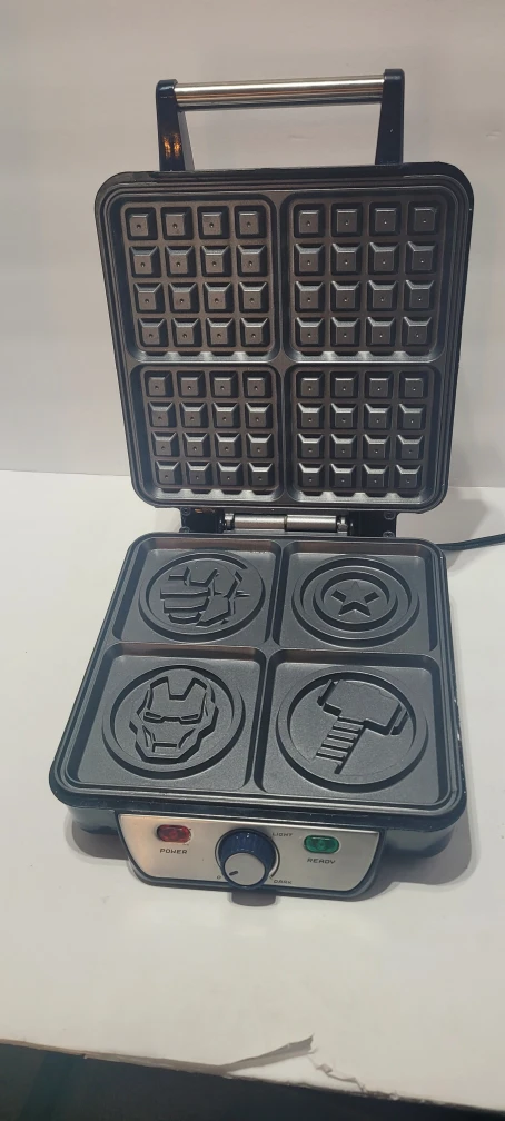Make some super waffles with this Marvel Avengers waffle maker! It has a setting for light or dark waffles. The model number is MVA-281.