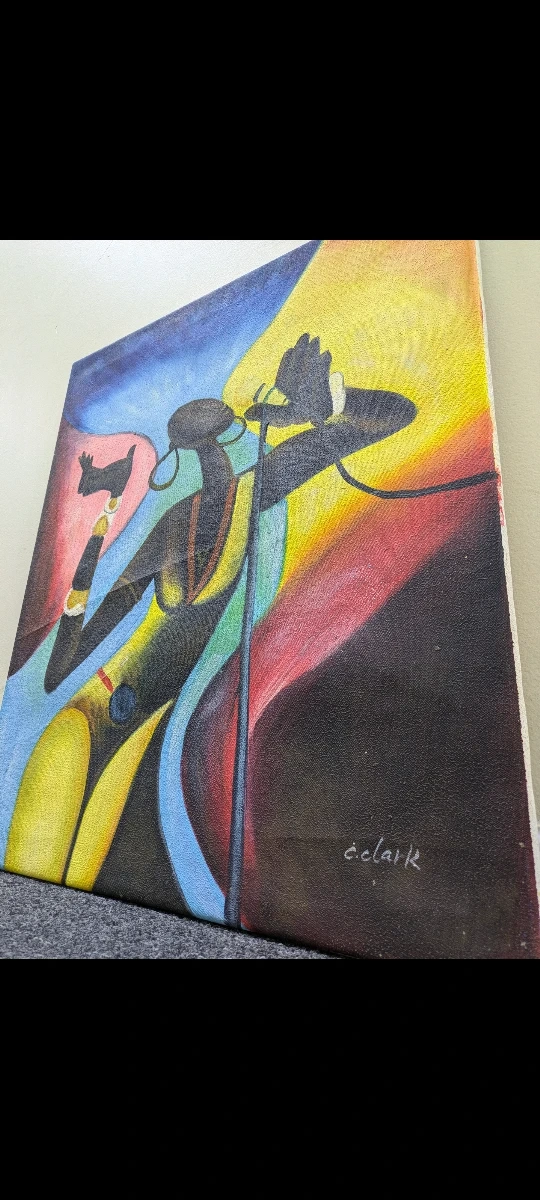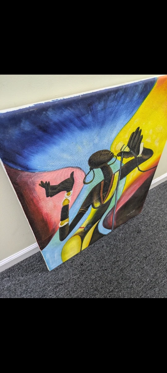 The painting is in excellent condition. It was not created by me. The images show the details of the painting. It is on canvas. The last picture shows the back for hanging.