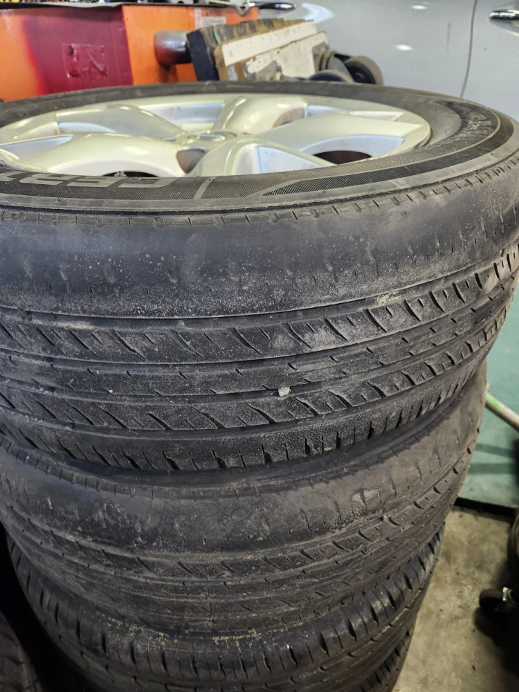 Selling a set of four tires, size 225/60R17, mounted on Nissan rims. They're used, but still have some life left in them. Perfect for someone looking for a budget-friendly set!