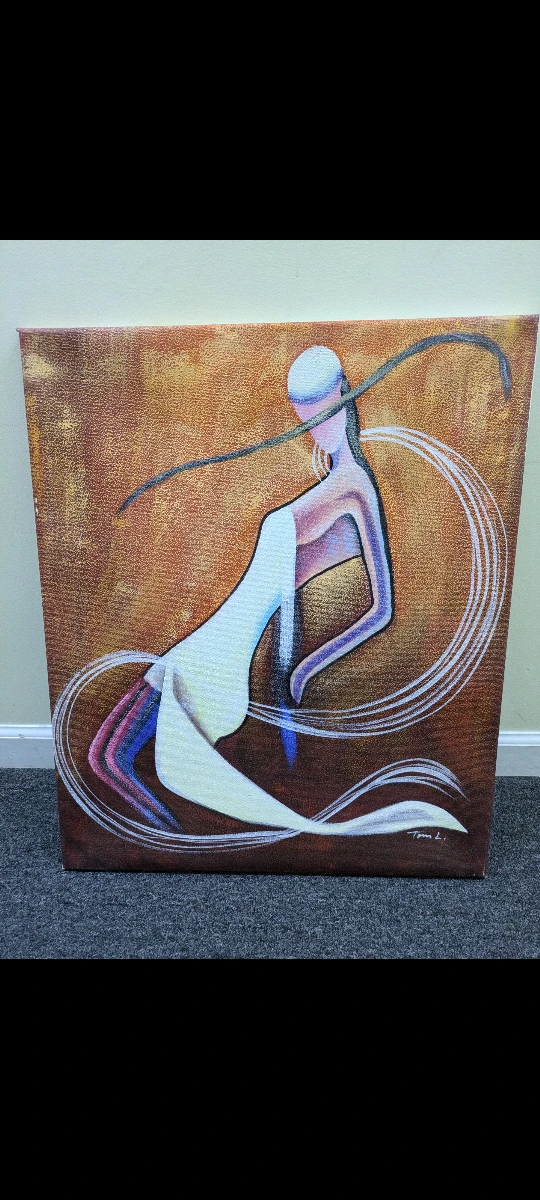 The painting is in excellent condition. It was not created by me. The images show the details of the painting. It is on canvas. The last picture shows the back for hanging.