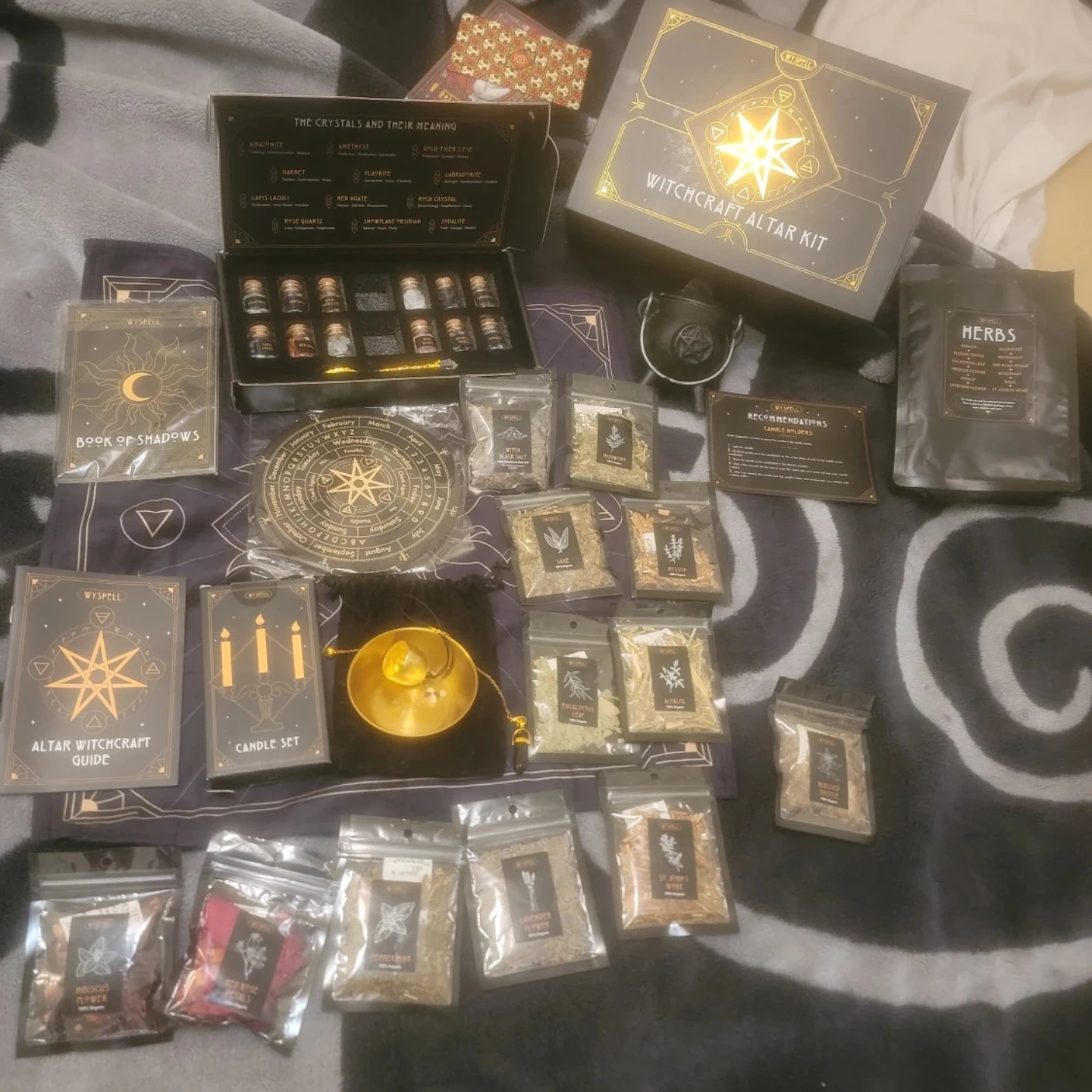 Selling my Wyspell Witchcraft Altar Kit! It includes crystals, herbs, a pendulum, a small cauldron, candles, and more! Perfect for anyone interested in witchcraft or looking to enhance their altar