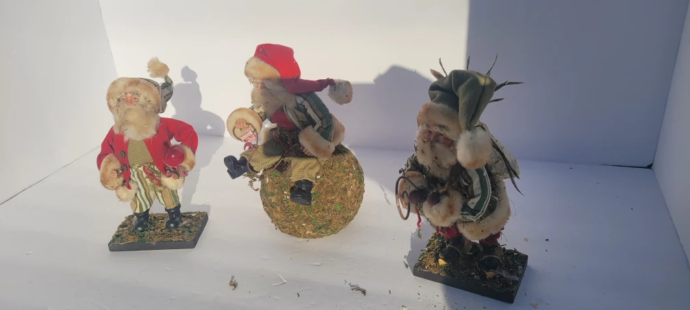 I'm selling these vintage Santa Claus figurines. They have a unique and charming design, perfect for adding a touch of holiday cheer to your home decor. They show some signs of wear, which adds to their vintage appeal!