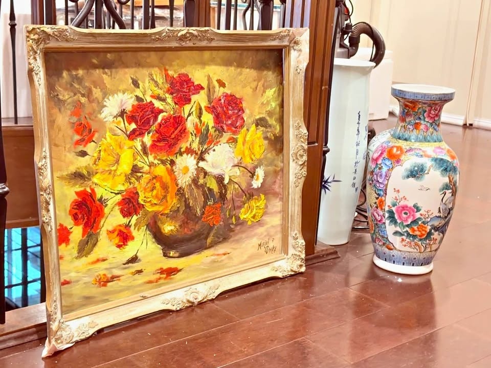 Vintage Framed Floral Oil Painting
