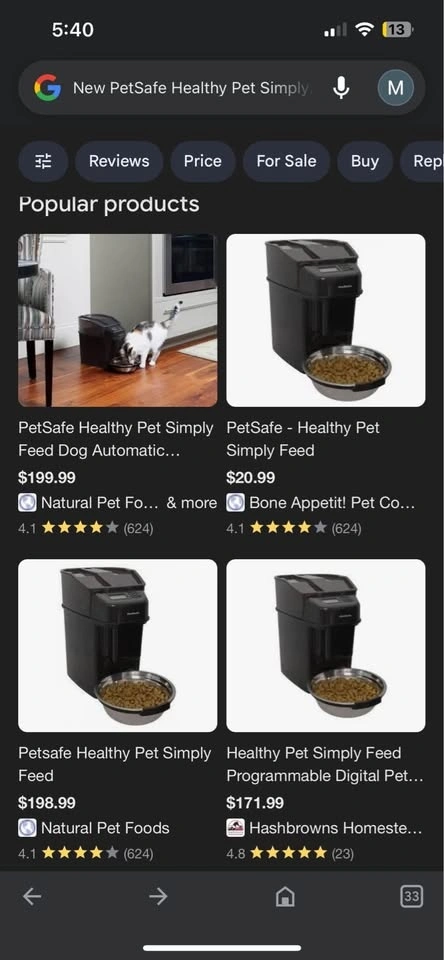 PetSafe Healthy Pet Simply Feed Automated Pet Feeder. Never miss your cat or dogs meal again! This will change your life and take your mind off one less “to do” for the day. Tired of your cat scratching the door every morning meowing to be fed? I know I was. That’s why I originally bought it. Program up to 12 meals a day anywhere from 1/8 to 2 cup servings for Cats OR Dogs. Works great - just needs 4 D batteries! ($4 at dollar store) Retails for $170 - $200 new. Any questions just ask. Pickup in Glenbrook