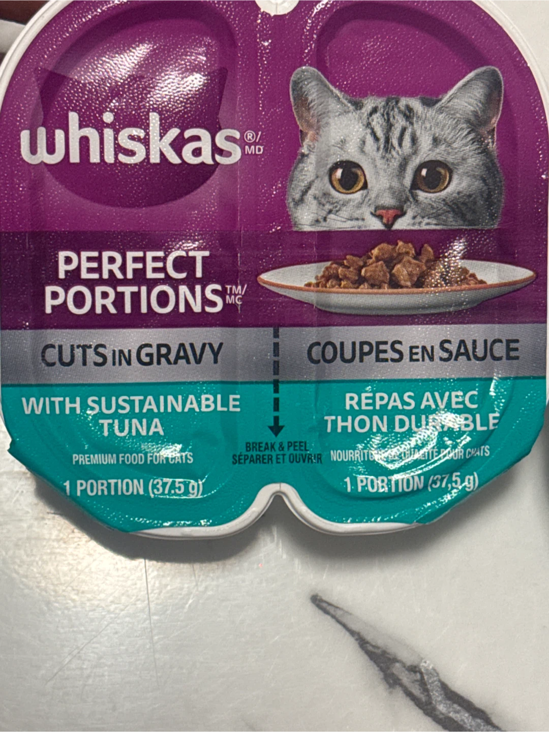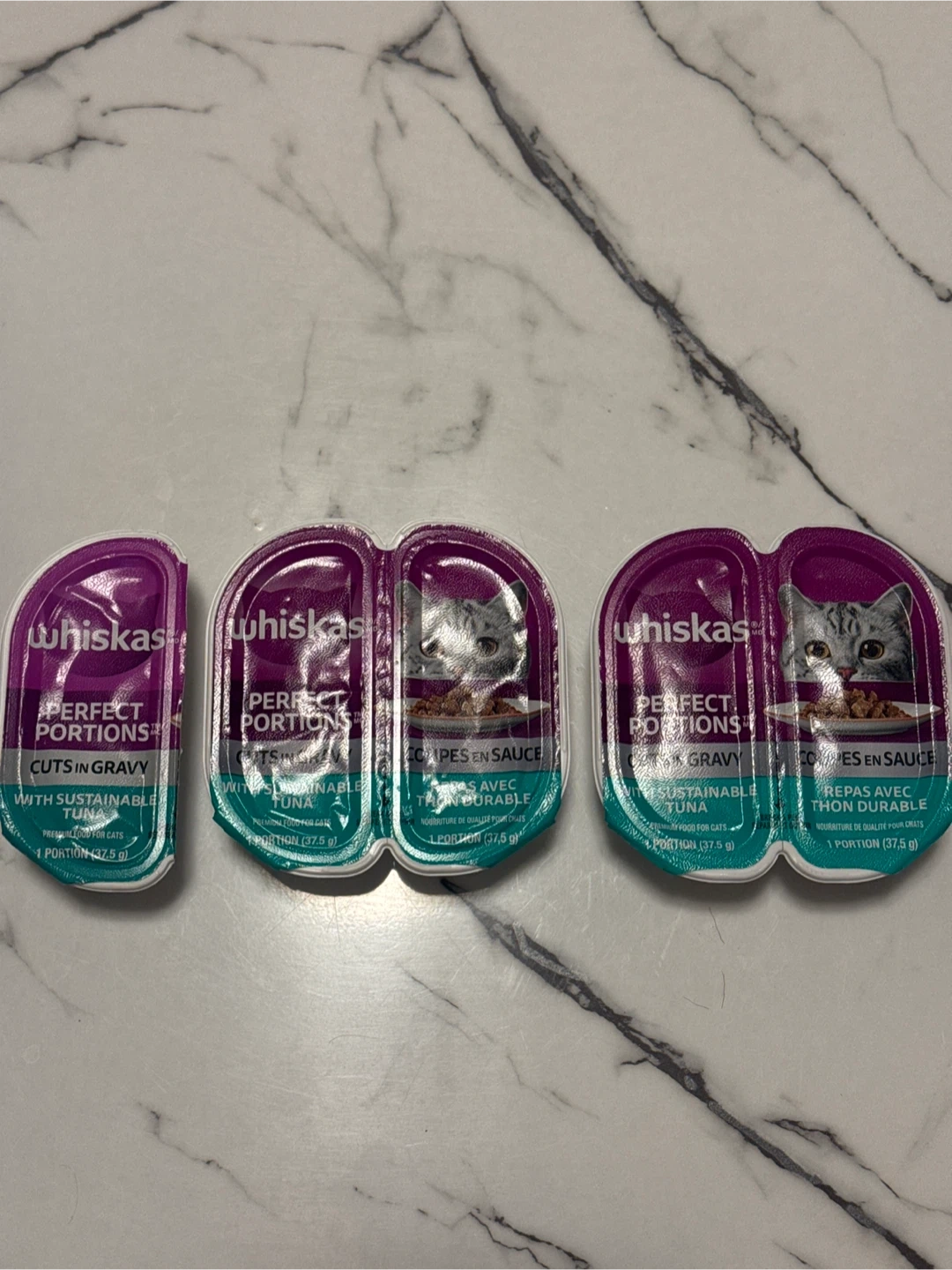 Selling Whiskas Perfect Portions Cuts in Gravy with Sustainable Tuna cat food! These are premium food for cats and each portion is 37.5 g. Expiry Date: 2027 June 23